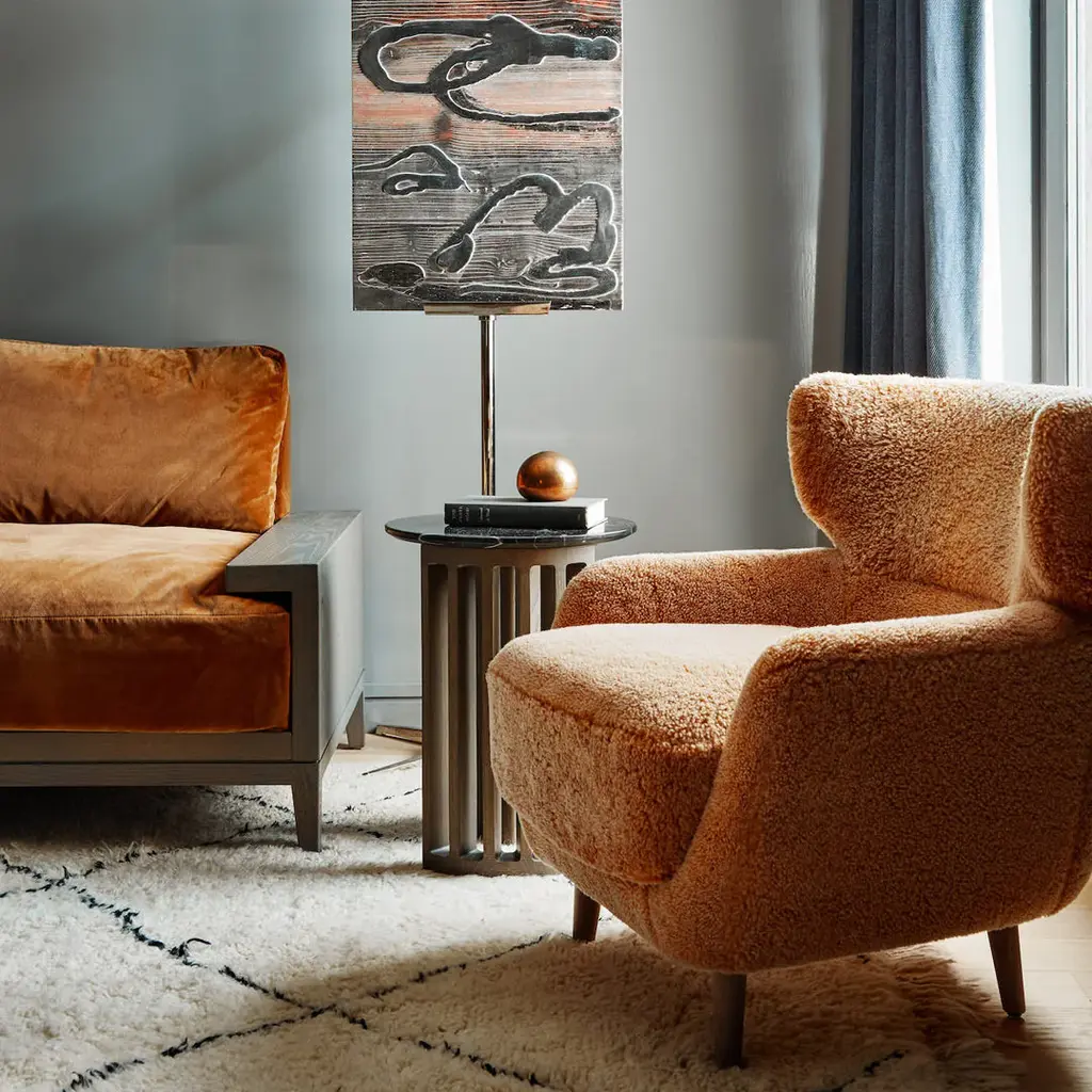 The Fold Lounge Chair takes its cues from Teddy, slightly compressed for a smaller footprint. Without compromising style, Fold's lower profile creates opportunities for conversation, perfect for a lobby or chic apartment living. Continuous vectors define the planes of this chair, which balances a traditional vernacular with a contemporary silhouette. Fold is available in a range of finishes, COM/COL, and customizable upon request.