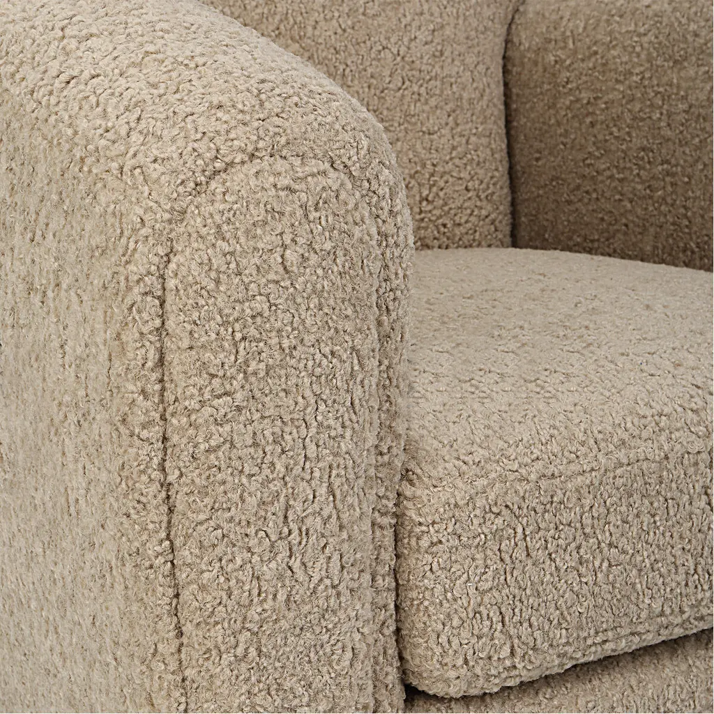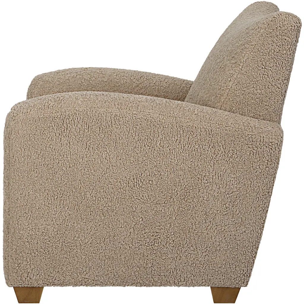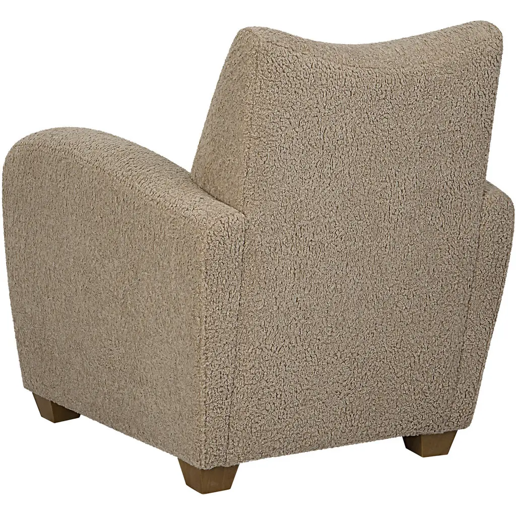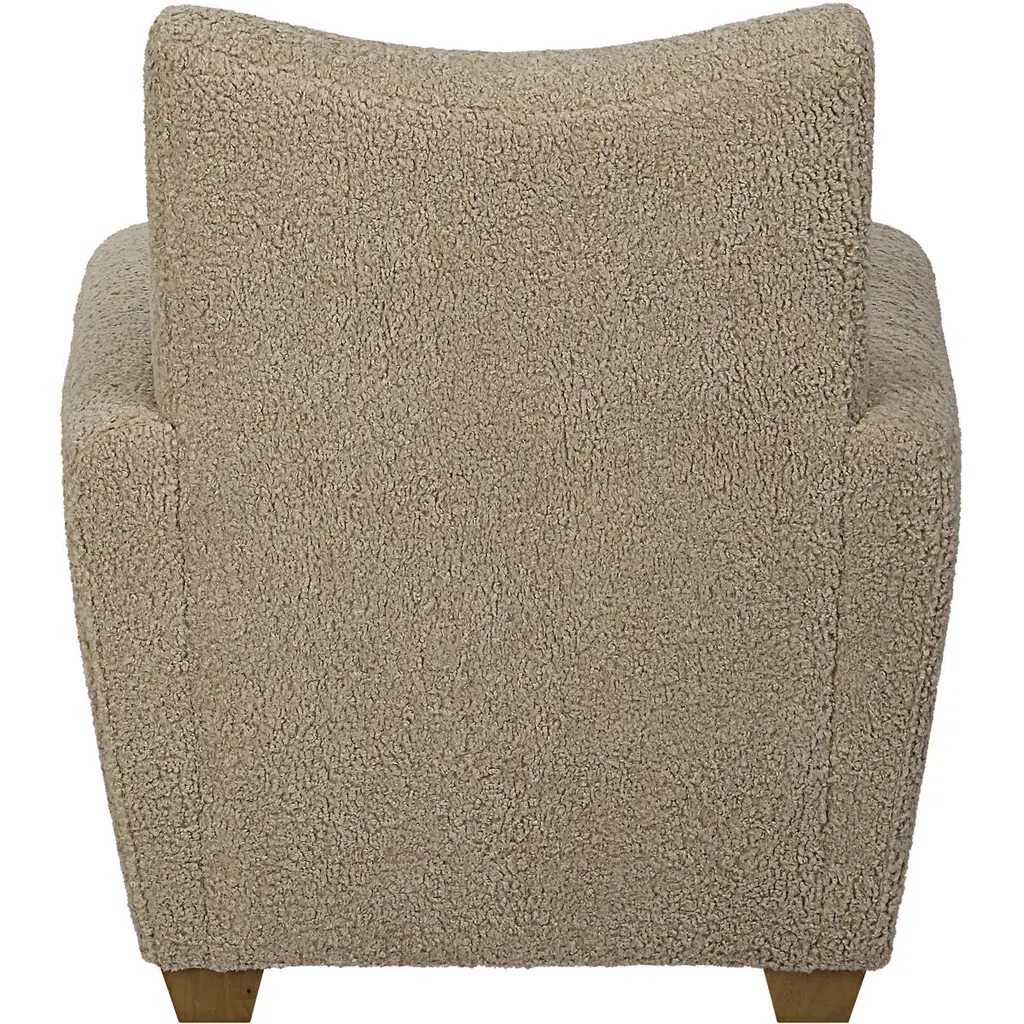 With Its Curved Track Arms And Supportive Back, This Cozy Accent Chair Is The Perfect Balance Of Comfort And Style. Fully Upholstered In A Soft Latte Toned Faux Shearling And Accented By Walnut Stained Wooden Feet. Seat Height Is 18".