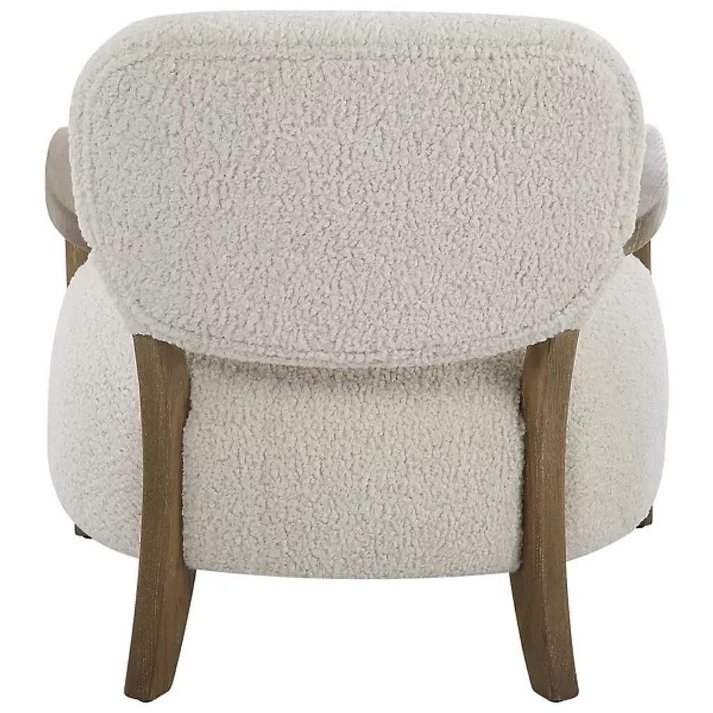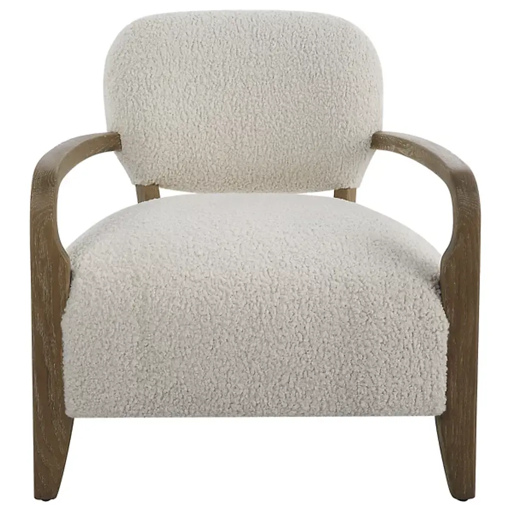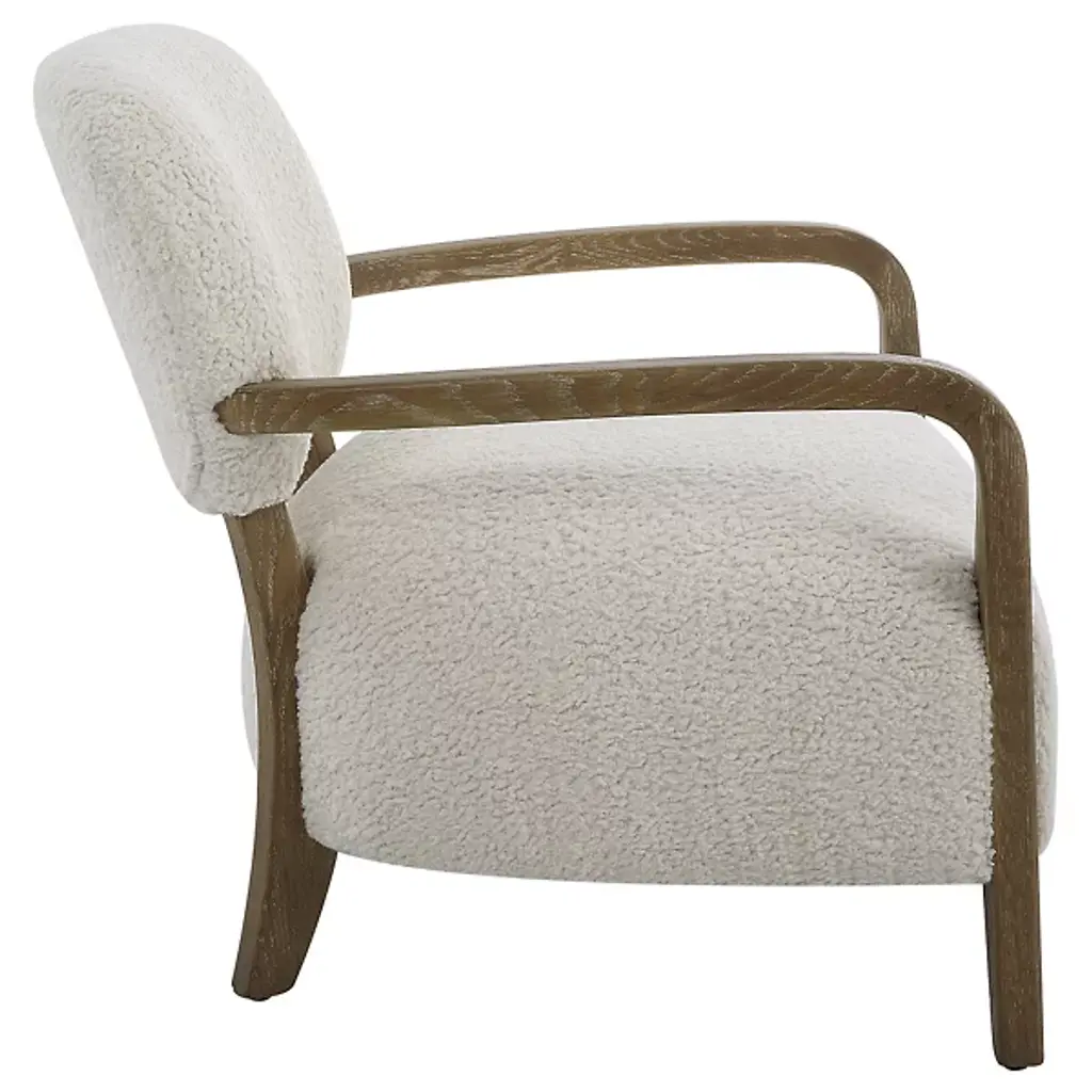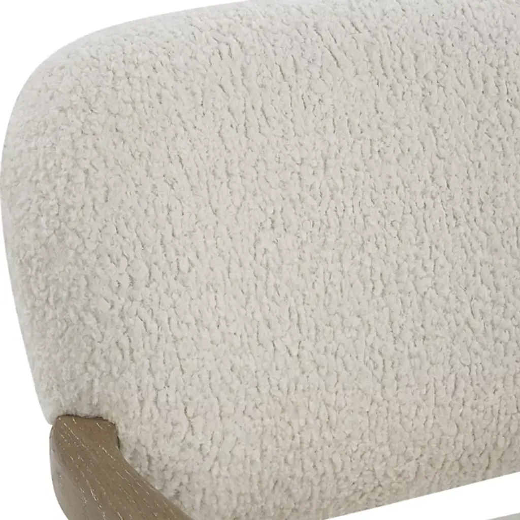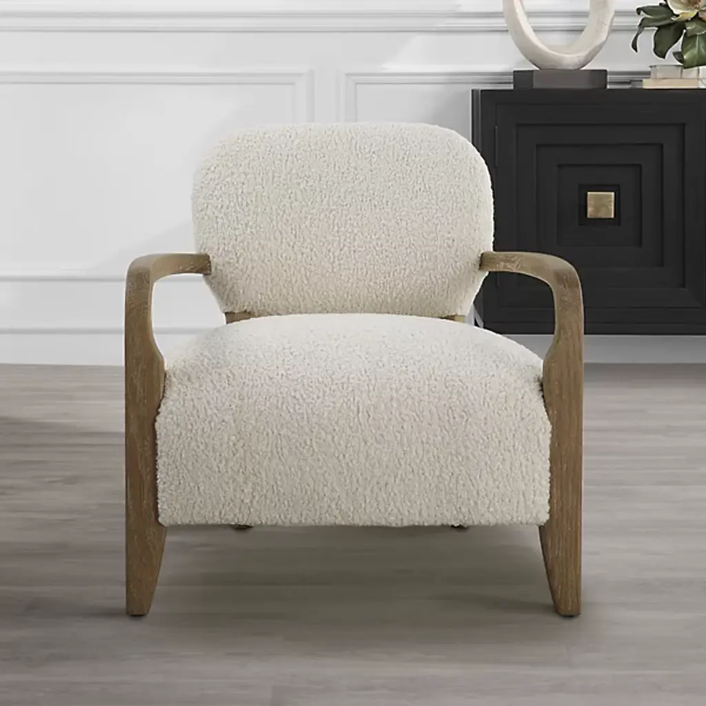 The Telluride Accent Chair from Uttermost enhances interiors with a stately Parisian charm, its curving, open design adds intriguing elegance to its space. The seat is upholstered in natural faux shearling. This chair offers both comfort and sophistication. The low-profile silhouette is complemented by a solid oak tapered frame, enhancing its mid-century modern appearance while coordinating with contemporary aesthetics. Crafted with focused attention to detail, the foam-filled seat and plywood frame make it an enduring addition to your interior setting.