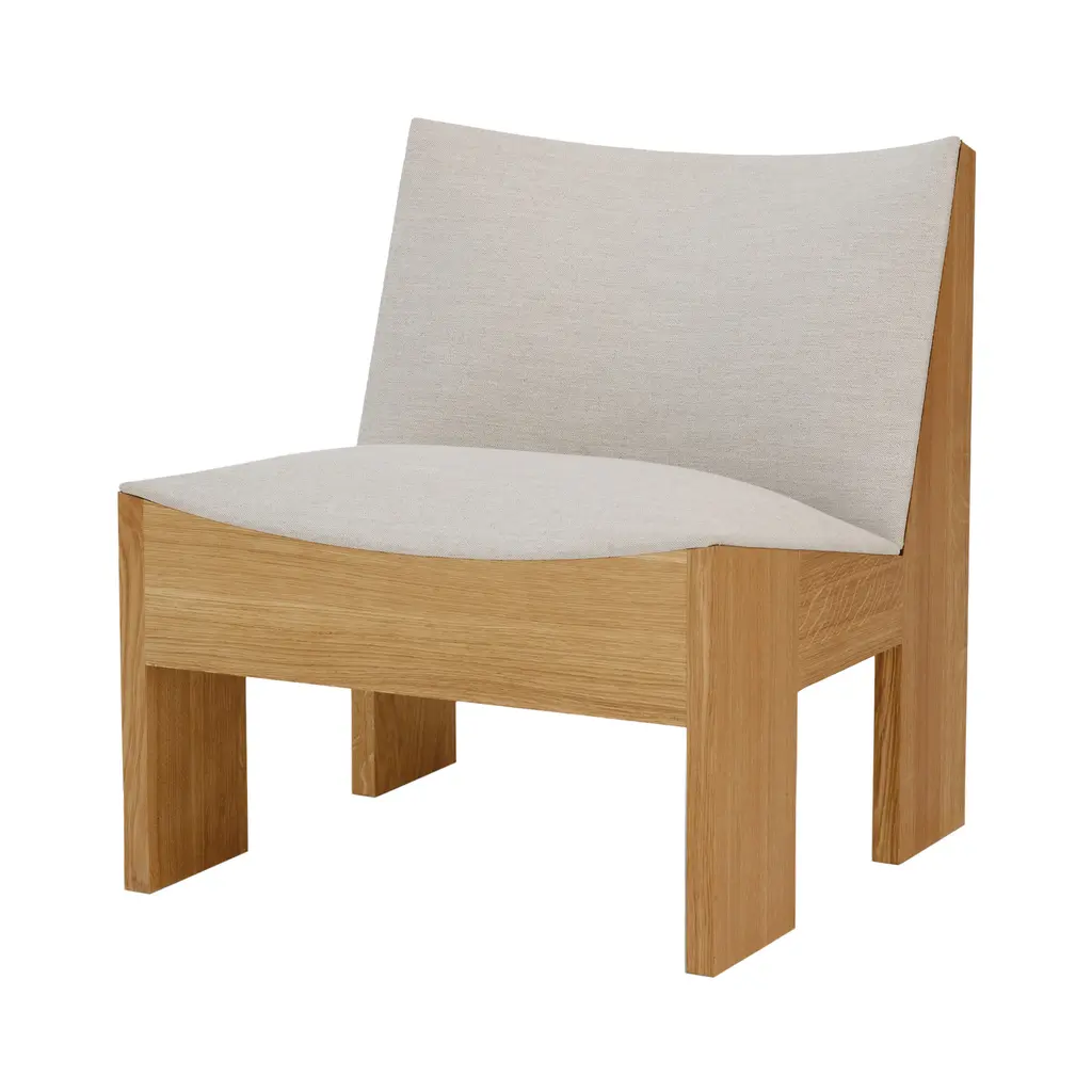 New Works' Tenon is a compact yet visually striking lounge chair, blending soft and hard surfaces with a mix of angular and smooth shapes. Made from solid oak, the Tenon lounge chair gets its name from the mortise and tenon joints of its frame. The gracefully curved wooden parts are finished with veneer, while the fabric-upholstered seat is cushioned with plush foam for added comfort. With its elegant, slender design, the Tenon lounge chair works beautifully as a companion to a sofa set or as a cozy seat in a reading nook, and its attractive back makes it a stunning choice for placement in the middle of a room.