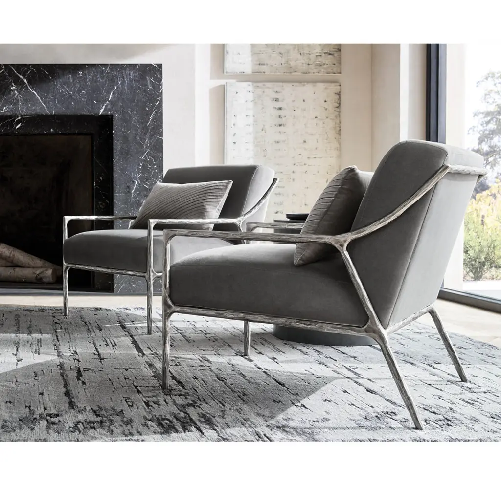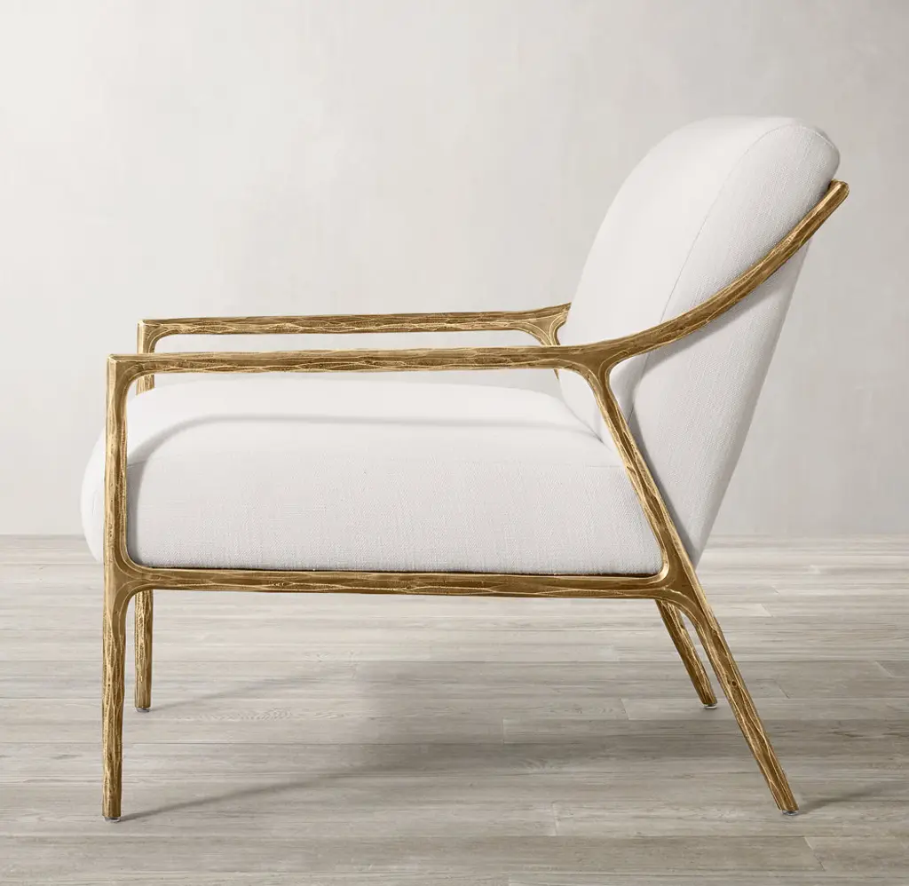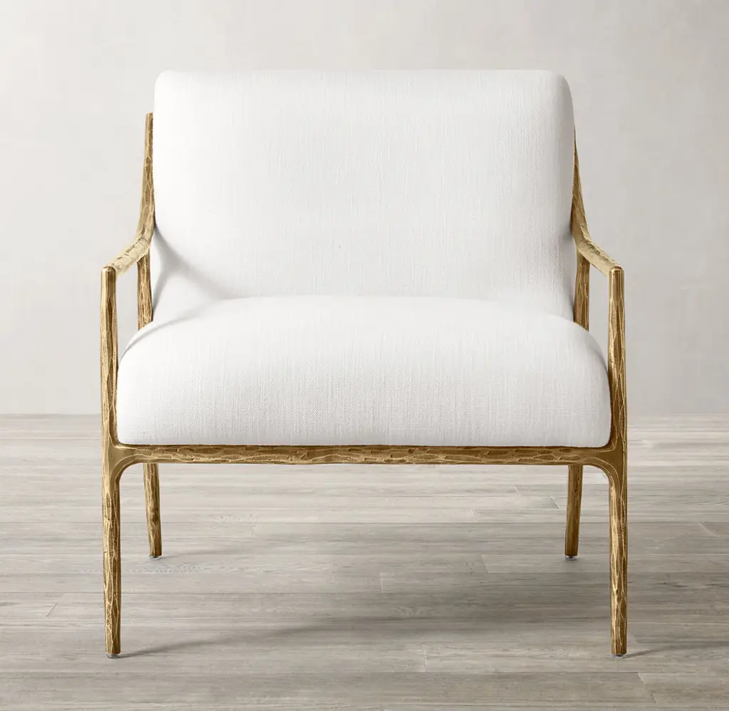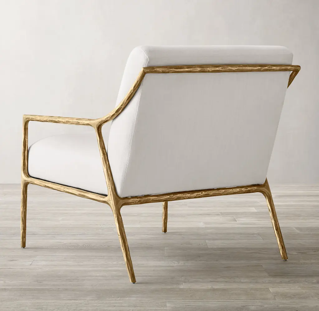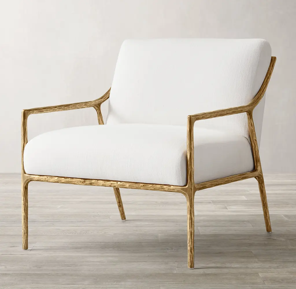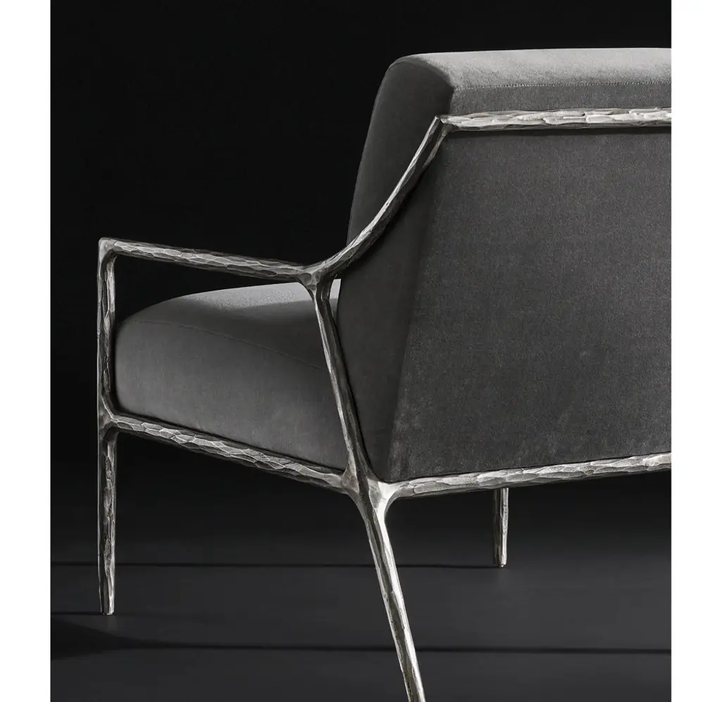 Inspired by the sculptural works of Salvador Dalí and Diego Giacometti, our chair from Julie Lawrence merges the rustic sensibility of a hand-forged metal base with tailored upholstery. Employing an ancient fabrication process, artisans hand hammer the metal bars to reveal an alive, imperfect and organic texture, a counterpoint to the frame's slender, tapered silhouette. ALSO AVAILABLE IN LEATHER SHOP THE ENTIRE COLLECTION