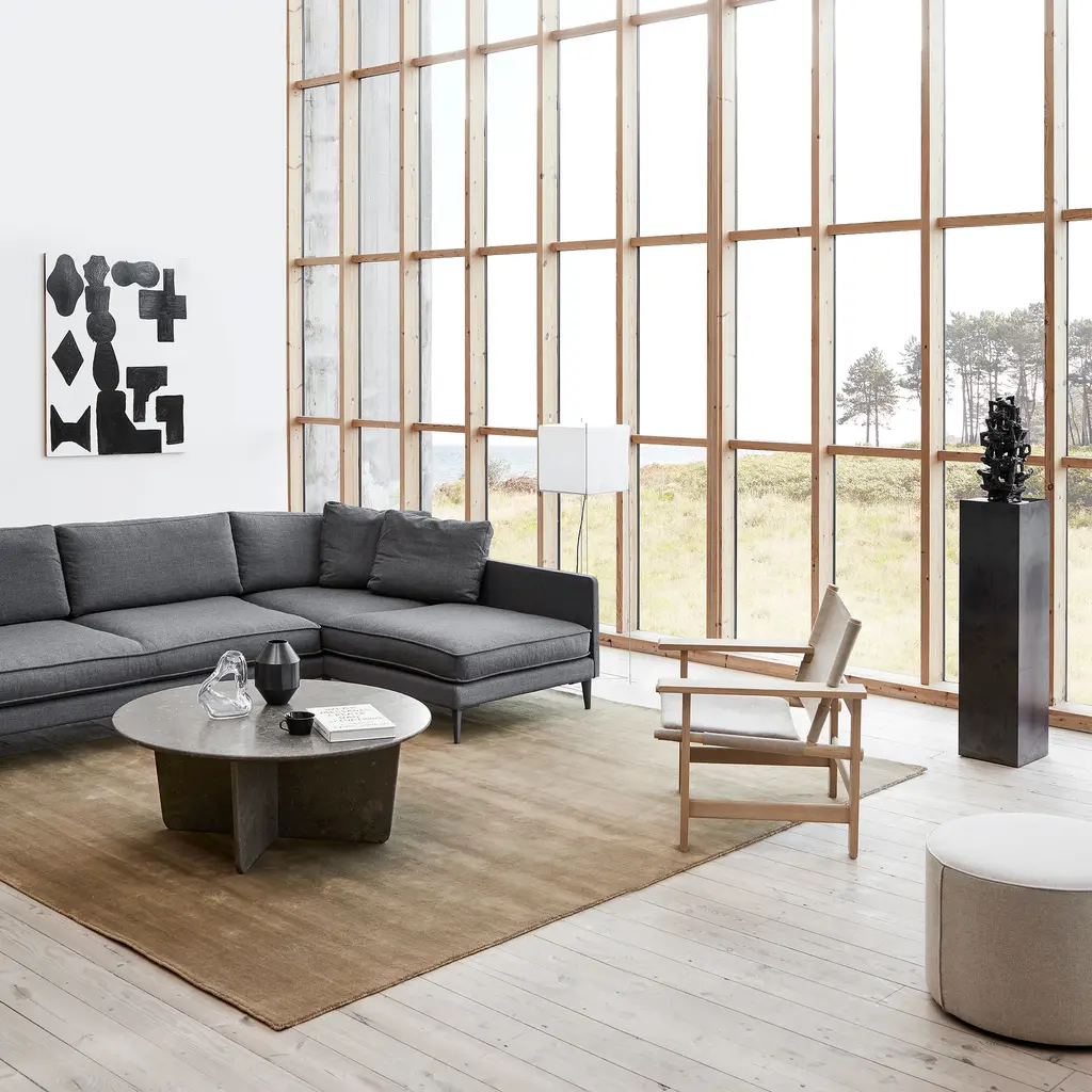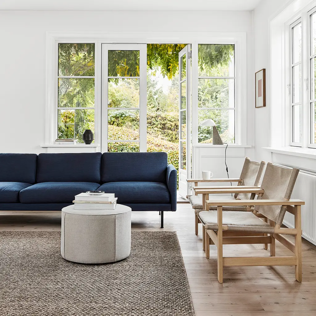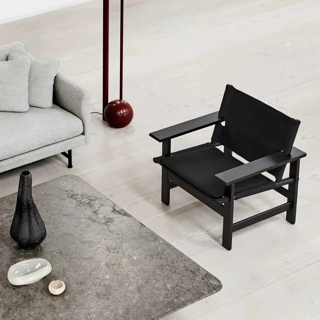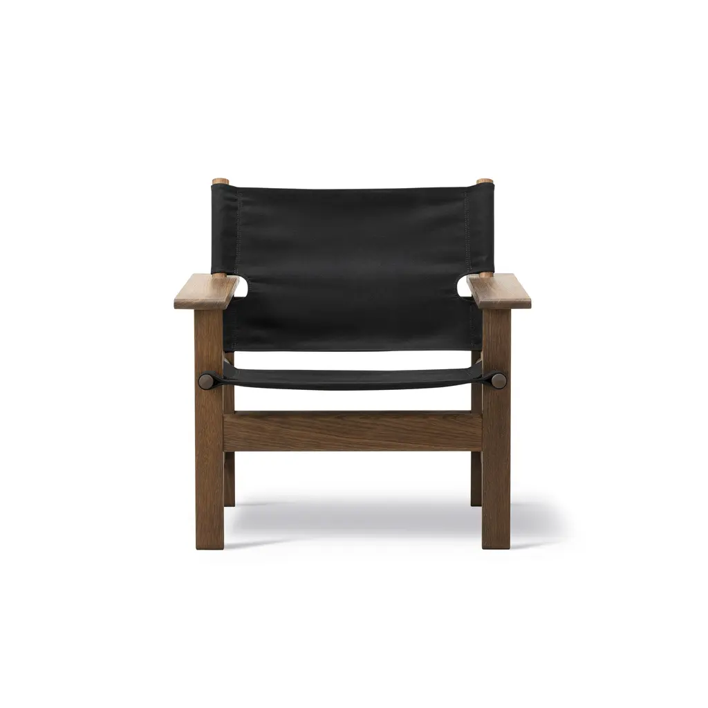 The Canvas Chair by Børge Mogensen showcases a design driven by functionality and simplicity. It features a flat canvas seat and back, suspended between round wooden frames made from prime European oak. The chair’s structure incorporates Mogensen’s signature use of clean horizontal and vertical lines, ensuring both stability and a straightforward aesthetic. Designed in 1970, the Canvas Chair remains relevant with its use of natural materials and unembellished design. Available in black or natural-colored canvas, with an optional cushion in canvas or leather, it suits various decor styles, from modern minimalist to rustic interiors. This chair is suitable for a hotel, lounge, retail space, or private home, providing a versatile and practical seating solution.