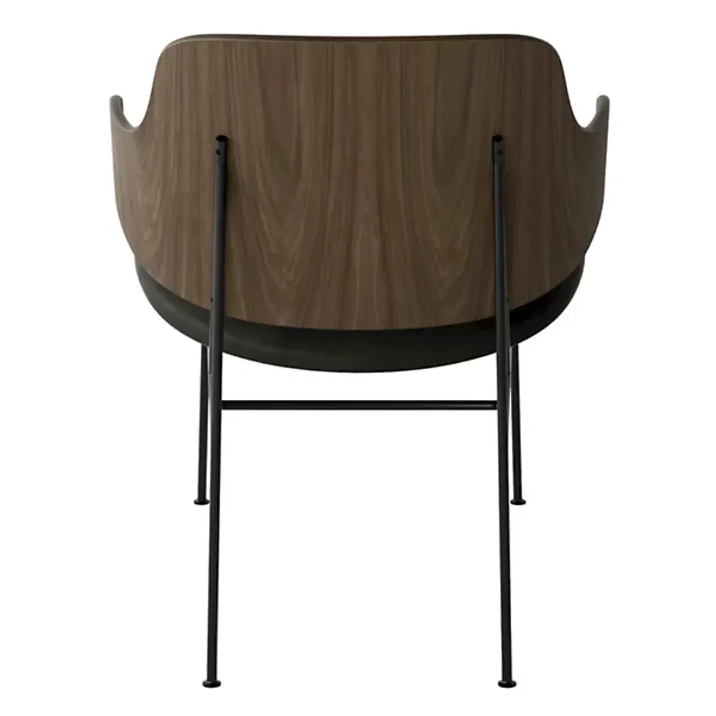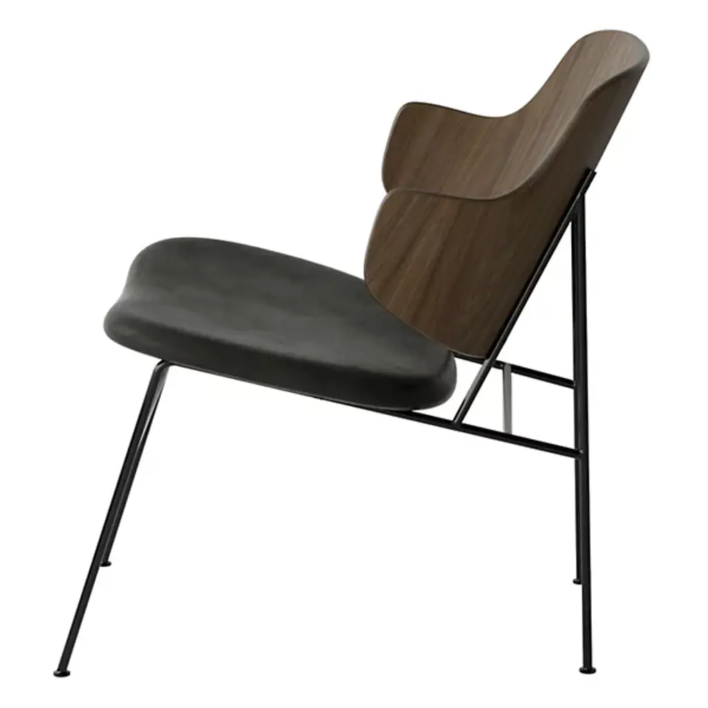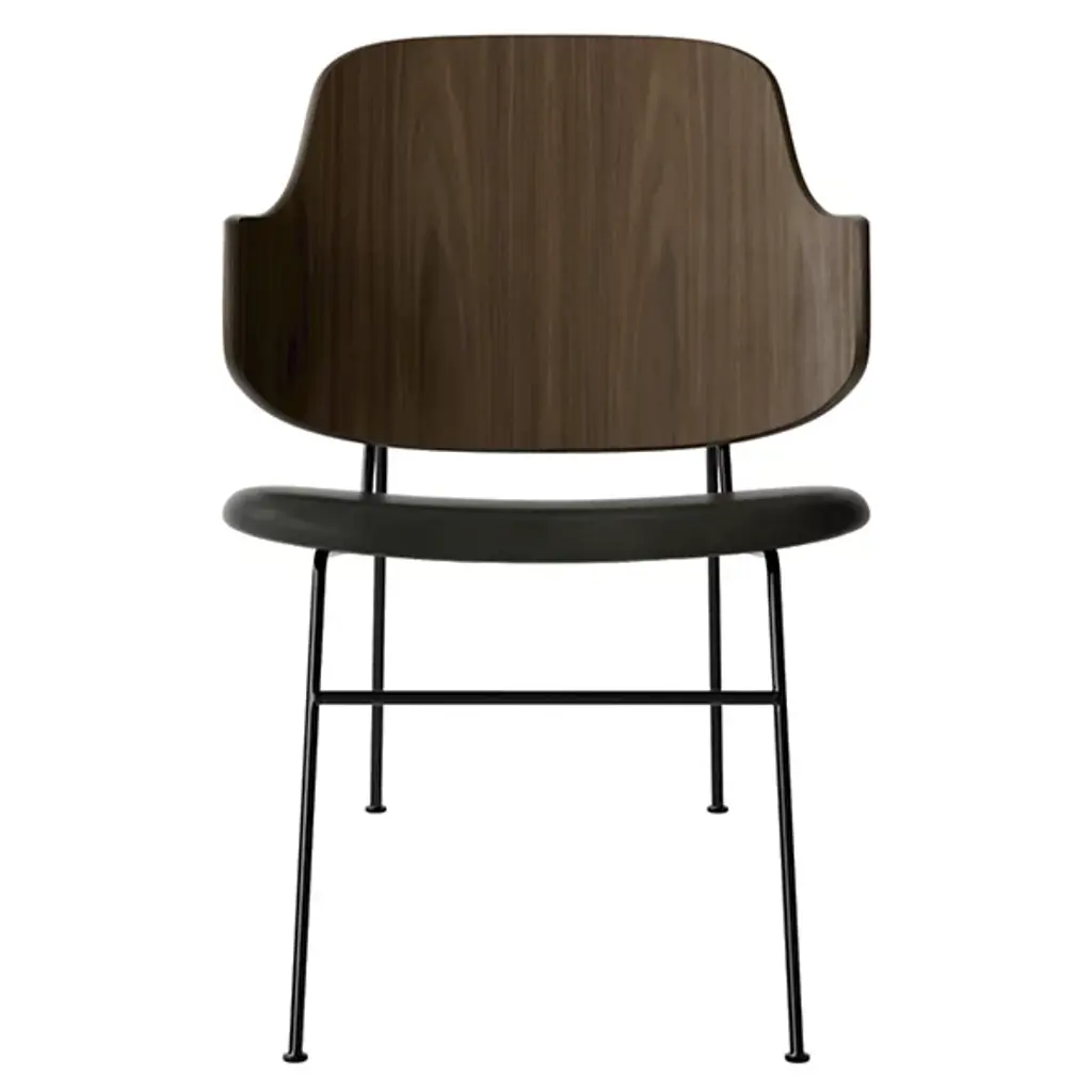 Imagine yourself falling back into the arms of a cozy penguin with The Penguin Lounge Chair, Upholstered Seat from Audo Copenhagen, formerly known as Menu. This Scandinavian-style, mid-century modern icon takes in designer Ib Kofod-Larsen’s renowned clean and sculptural lines. These lines are realized with raw, crafted materials. Slender powder-coated steel rods produce a graphic silhouette and a framework that leans one back with an airy feeling. A leather seat tops it and creates a luscious sensation when lounging courtesy of its foam filling. Inspired by a penguin’s flippers, the chair produces a back shell that hugs one with charming armrests. This shell’s plywood and veneer construction seduces with long wood grain streaks and a golden hue.