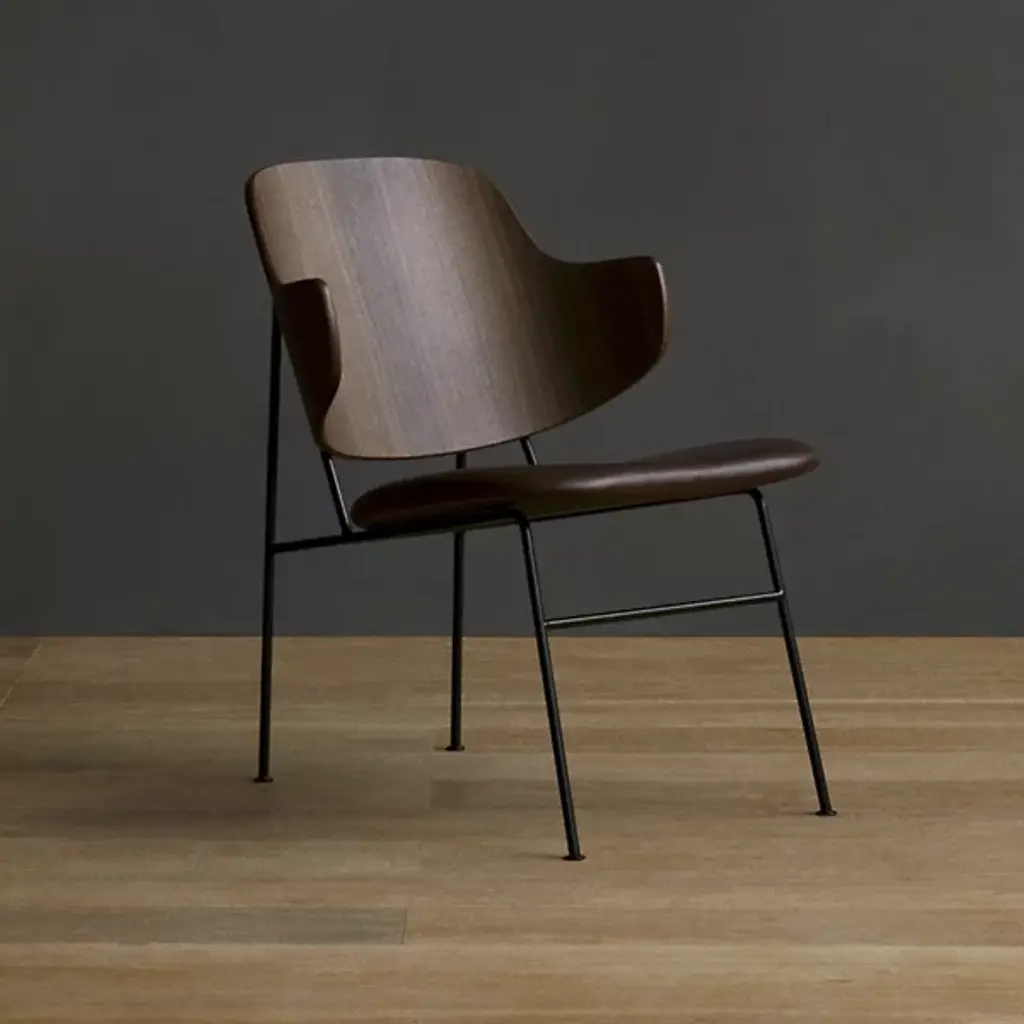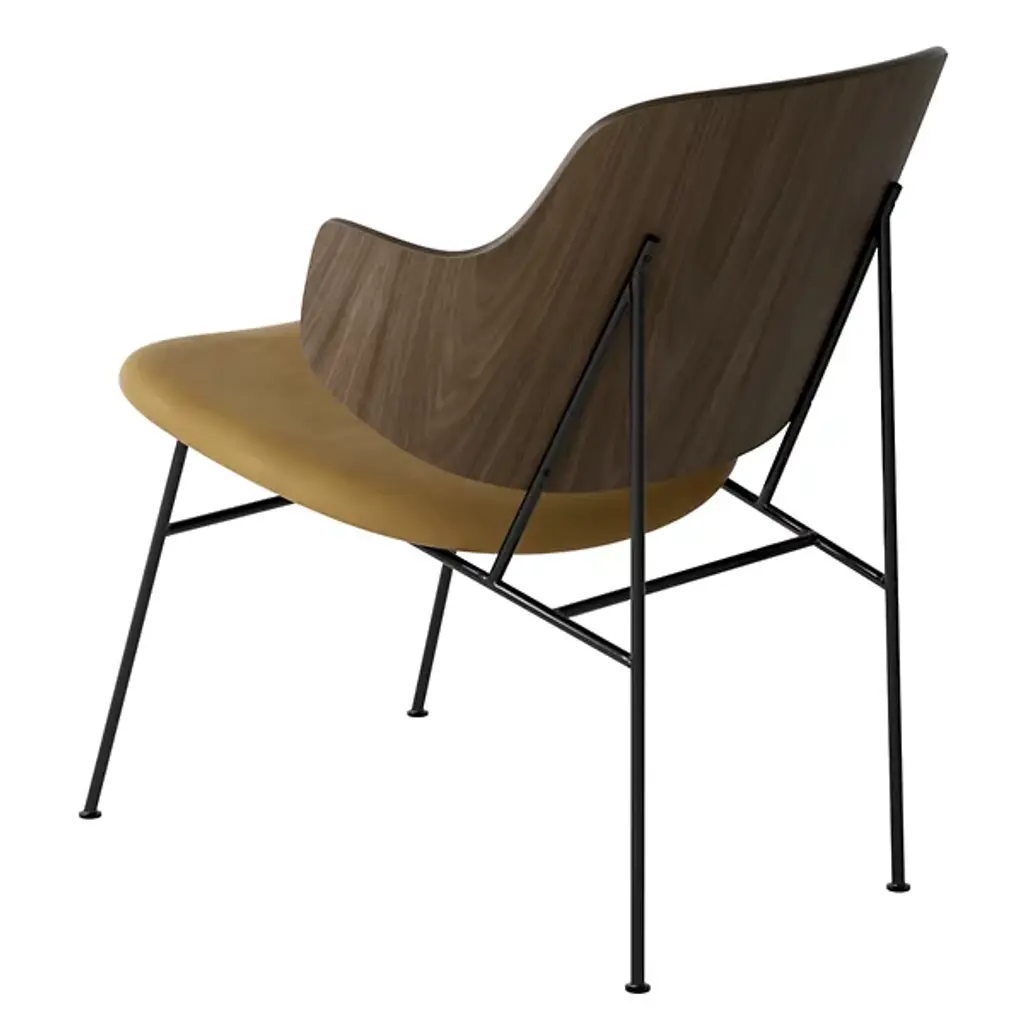 Imagine yourself falling back into the arms of a cozy penguin with The Penguin Lounge Chair, Upholstered Seat from Audo Copenhagen, formerly known as Menu. This Scandinavian-style, mid-century modern icon takes in designer Ib Kofod-Larsen’s renowned clean and sculptural lines. These lines are realized with raw, crafted materials. Slender powder-coated steel rods produce a graphic silhouette and a framework that leans one back with an airy feeling. A leather seat tops it and creates a luscious sensation when lounging courtesy of its foam filling. Inspired by a penguin’s flippers, the chair produces a back shell that hugs one with charming armrests. This shell’s plywood and veneer construction seduces with long wood grain streaks and a golden hue.