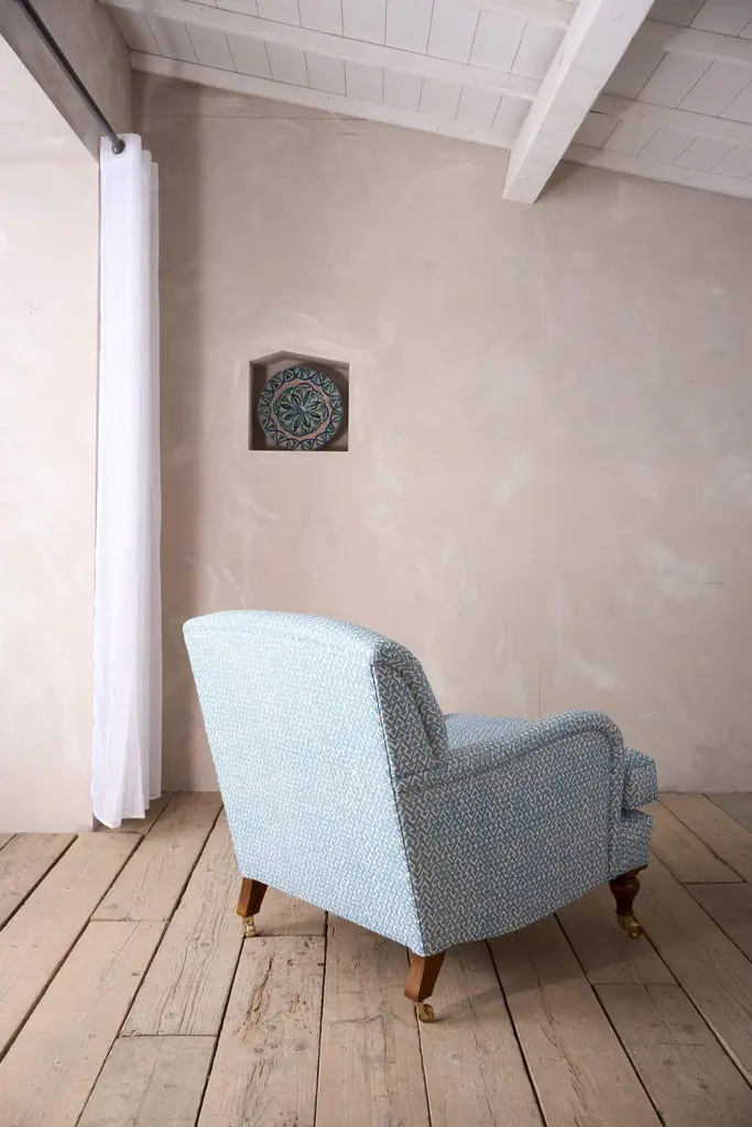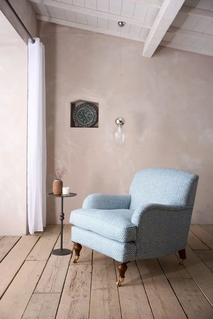 As part of our second collection we have taken influence for our seating from the strong classic designs of the British country house. We have always felt this style of seating offers ageless design, unparalleled comfort while being extremely practical in a huge number of interiors.This is our Rathmell armchair which we have created to offer a stylish seat that will sit in both modern and traditional interiors. Shaped sides to mirror the arms and a generous feather seat cushion to make this extremely comfy. The perfect seat to enjoy a good book or tipple of choice.Height 93cm Width 83cm Depth 102cm Depth of seat 62cm Height of seat 55cmChoice of legs availableAll sizes have a tolerance of 2cm either sideThe chair comes in a selection of Linen, Velvet, Mohair and Striped materials. Inclusive in the price so please get in touch if you would like to see options. Fabric in image is additional.Our seating is made entirely by hand right here in the UK from sustainably sourced natural materials. Including solid beech frame and legs, hand tied springs and full feather cushions. Minimal environmental impact throughout its construction and true quality materials used. Both of these were our top priorities when working through the design.The price quoted below is for our standard model. It includes a fabric of your choice, UK mainland delivery and VAT.If the shown model isn't perfect for you then no problem as this is a hand made product we are able to make to any size and each quote will be individually generated based on you tailored requirements.Lead time from order 8-12 weeks