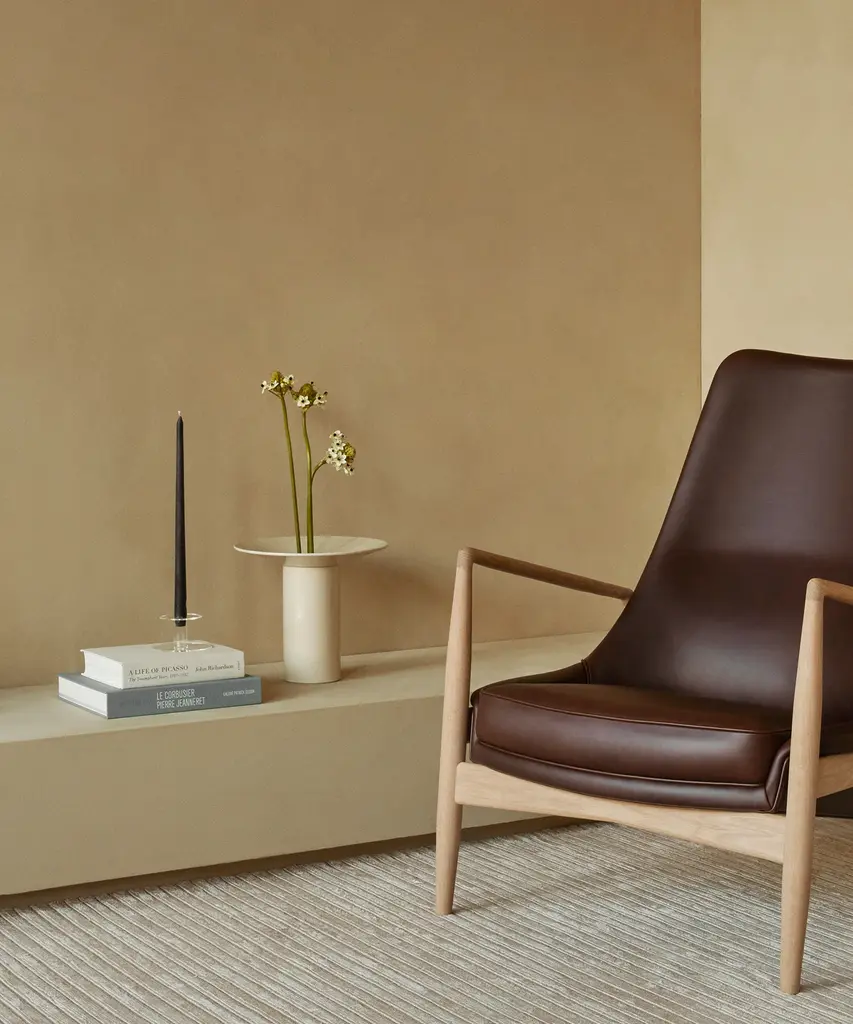 The Seal showcases the Danish designer’s attention to detail, comfort, and organic forms to full effect. One of his best-known designs, the casually elegant chair invites relaxation thanks to its angled frame and cushioning seat and backrest. Designed in 1952 by Ib Kofod-Larsen, Audo Copenhagen.