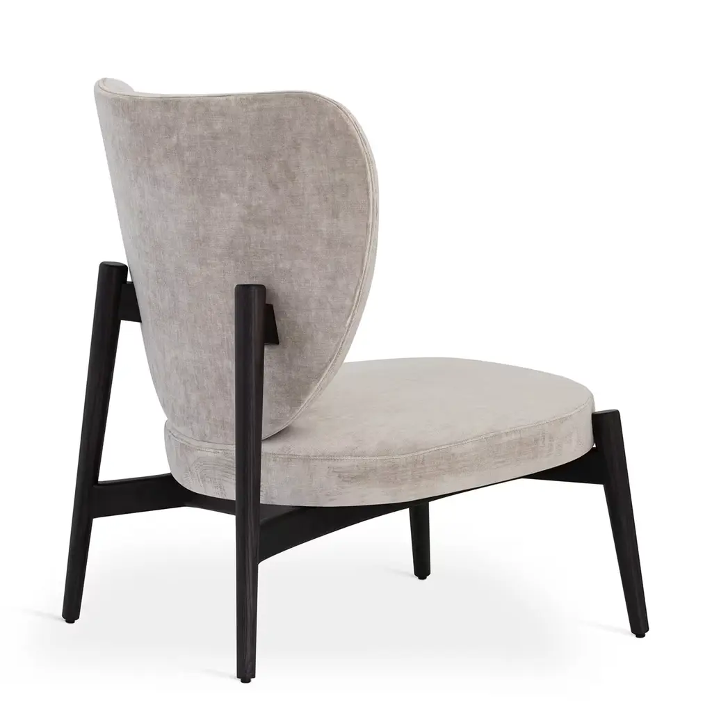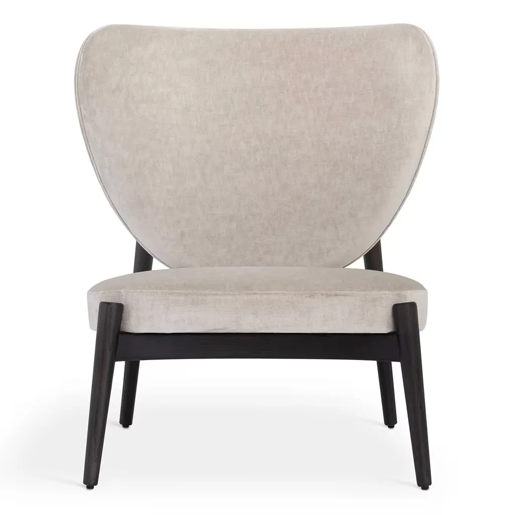 Sinuous and bold, this armchair is an exquisite invitation to comfort and relaxation. Boasting a sleek and minimalist shape with no armrests, it is padded with polyurethane foam and fiberfill, resting on a solid wood frame finished in a matte moka hue. The seat and shaped backrest are upholstered with Elios fabric.