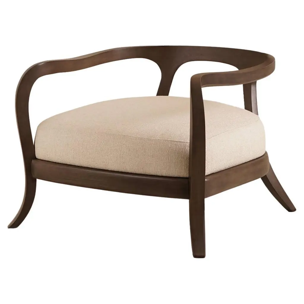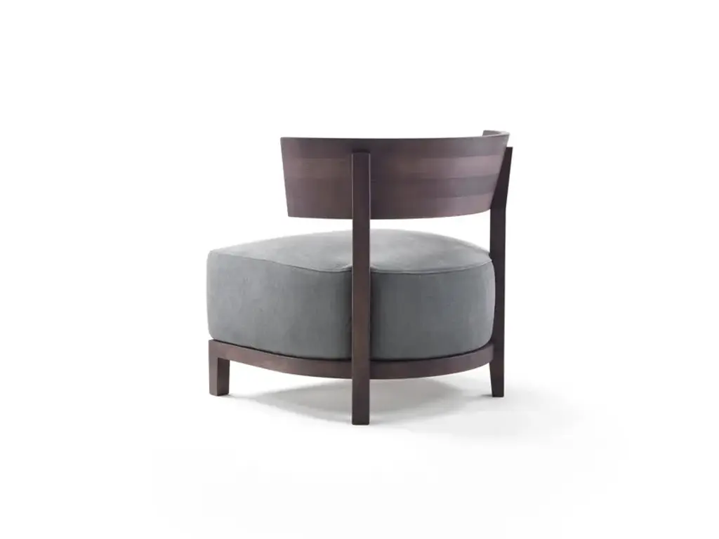 Designed in the year 2000, its intrinsic elegance has made the Thomas armchair one of the absolute best-sellers in the Flexform product line. Padded in polyurethane foam and Dacron, the substantial seat cushion rests on a sophisticated curved wood base. The streamlined yet functional semi-circular seat back is made of premium Canaletto walnut or ash stained in different shades, or in a glossy lacquer finish in a wide range of sophisticated colors. With its graceful lines and compact proportions, the Thomas armchair is a veritable all-around piece that can easily be paired with any of the sofas in the Flexform collection.TECHNICAL SPECIFICATIONSFrame in solid wood canaletto walnut, canaletto walnut extra, canaletto walnut stained coffee. Ashwood natural, stained teak, stained ebony, stained wenge, stained cherry, stained walnut , stained coffee, stained brown or lacquered glossy white, black, grey-green, lilac, mocha, salmon pink, dove grey, pine green. Seat cushion in foam polyurethane and dacron. Upholstery removable fabric or leather covers.MATERIALS Frame: wood finishes Upholstery: cashmere - cotton - leather - nabuk - linen - mixed composition - velvet