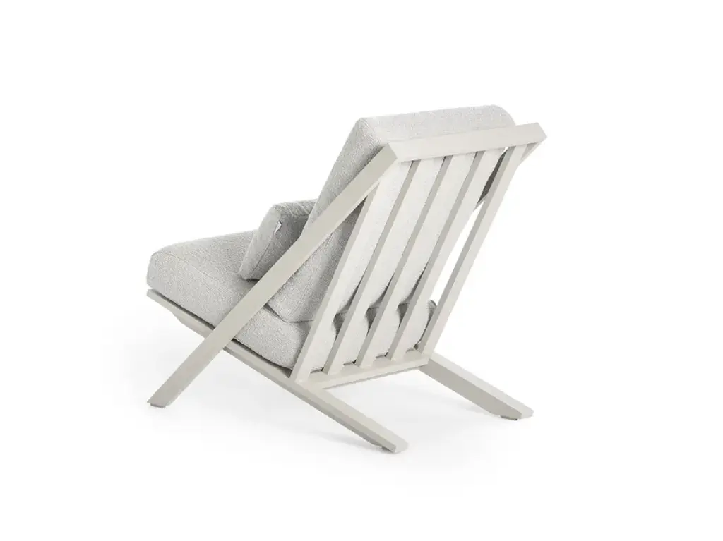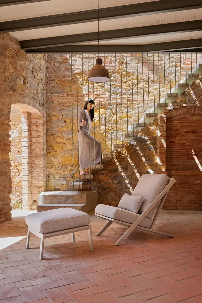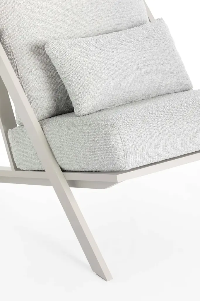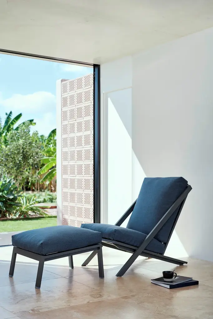 TIMELESS is the outdoor furniture collection inspired by the rational architectural language from the early 20th century, designed by José A. Gandía-Blasco Canales and Borja García. Its design of discreet but characterful forms communicates honesty, without any unnecessary ornament other than its structure. Its various elements are carefully balanced in order to provide maximum comfort.Made of thermo-lacquered welded aluminium profiles.Teak wood.Phenolic plate or porcelain.Polyurethane foam rubber covered with water-repellent fabric. Removable fabric cover.