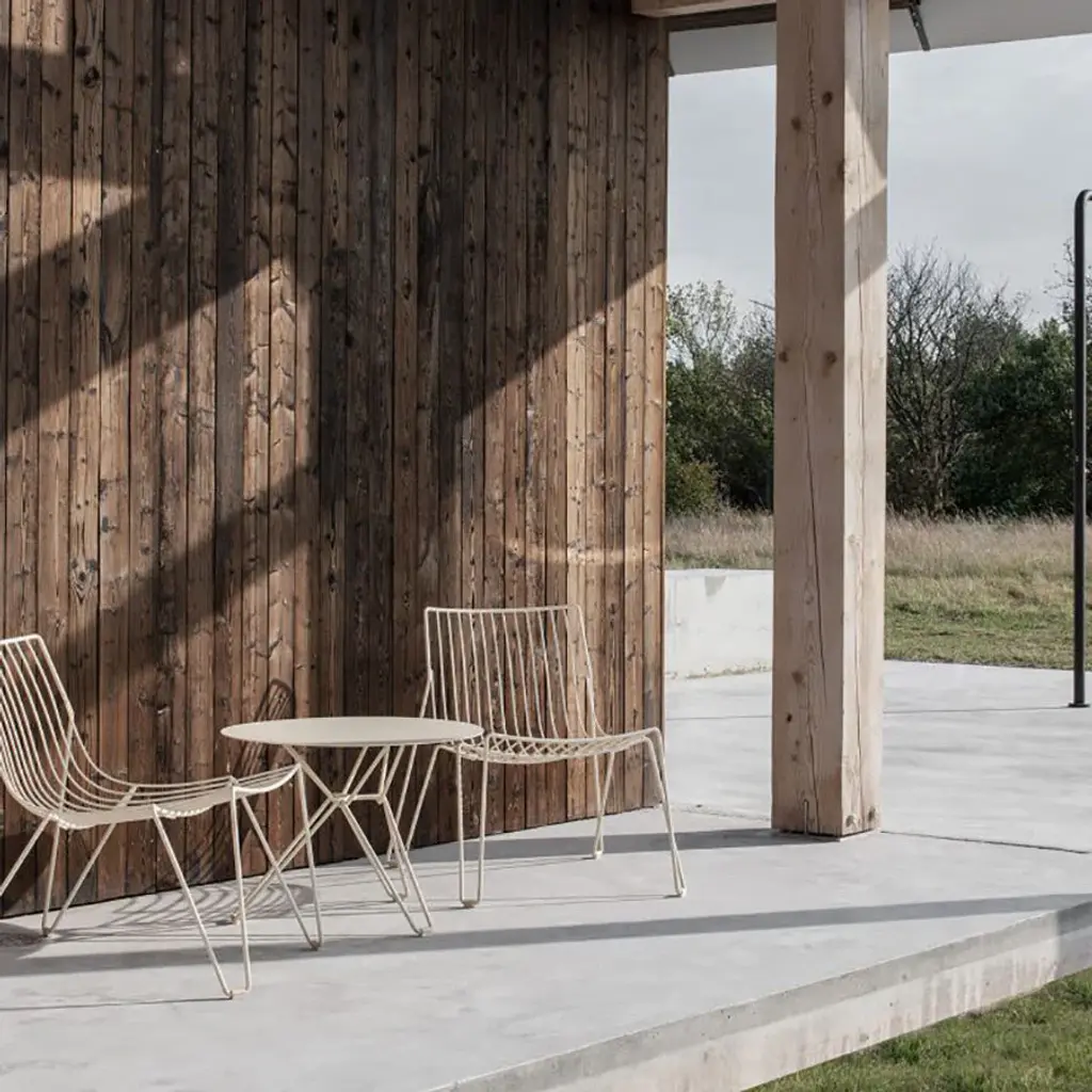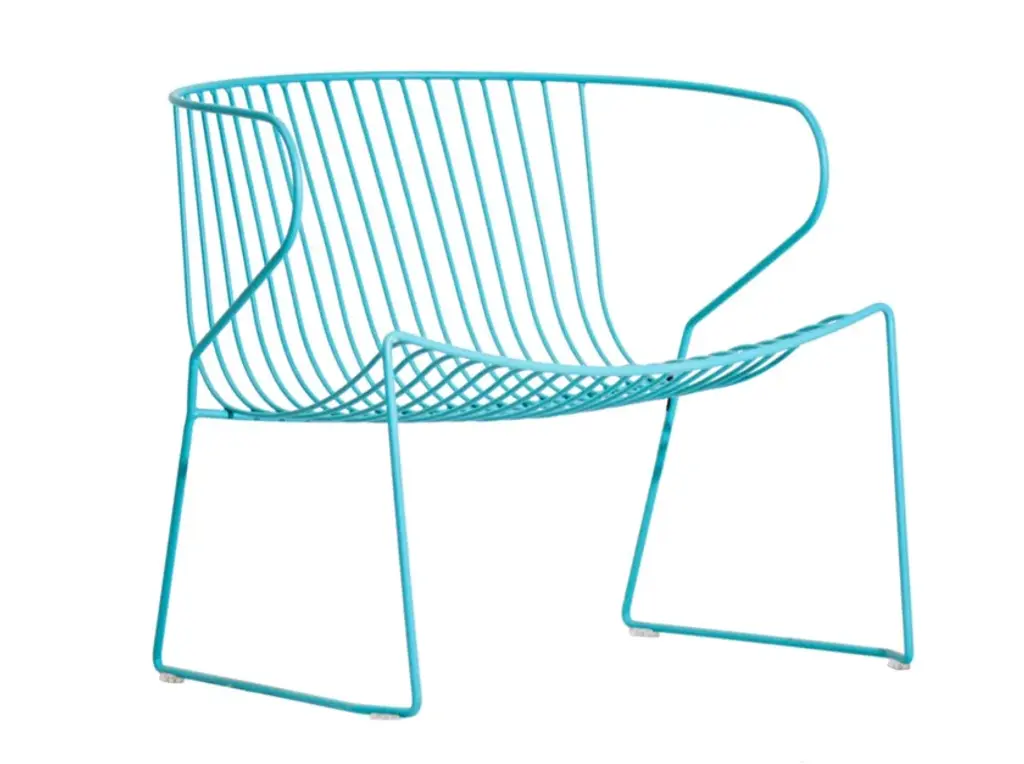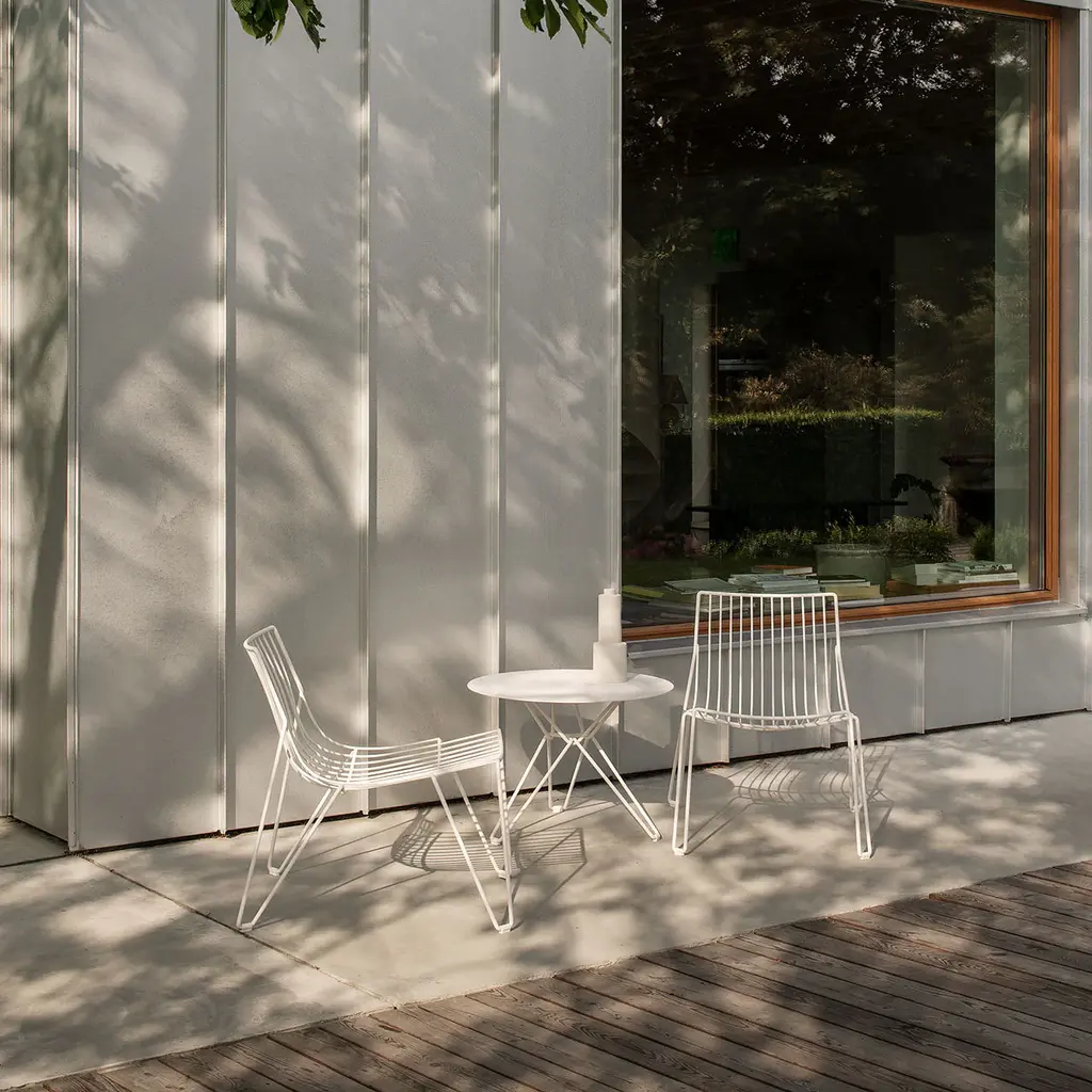 Easy does it in this lounge version of the award-winning Tio Chair. As with the other seating in the line, it's versatile and stackable, fabricated in sturdy polyester powder-coated galvanized wire. And in 10 purposeful colors (with or without the option of a padded seat, available separately), Tio fits in anywhere, inside or outdoors. Chris and design partner Magnus Elebäck take outdoor-indoor furniture to another level via their Stockholm-based firm, Massproductions. The extensive Tio collection offers high-quality tables to seating, in a range of incarnations. "Our goal is to use industrial processes to create furniture which people can get excited about," says Chris. "Something that gives them pride of ownership. You can do that with a hand-crafted piece, but for us the satisfaction comes from achieving it with an industrially produced article.