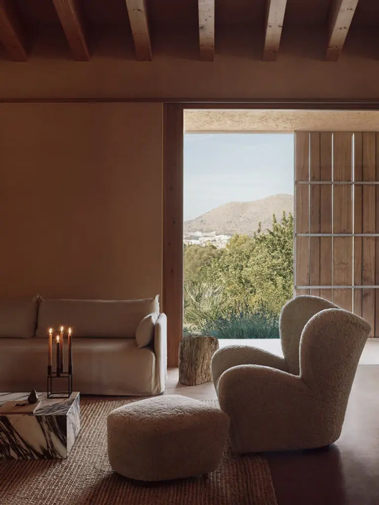 The Tired Man was launched at the Copenhagen Cabinetmakers’ Guild Exhibition in 1935 and has since become an icon of Danish design. The epitome of craftsmanship and comfort, the characteristically curved armchair was designed by Flemming Lassen to feel “as warm and snug as a polar bear cub in the arms of its mother.” Relaunched in 2015, the award-winning design is offered in plush upholstery, including sheepskin in a nod to the original, and with natural or dark-oiled oak heartwood legs and front brass casters for easy movement. A corresponding footstool ensures further comfort.