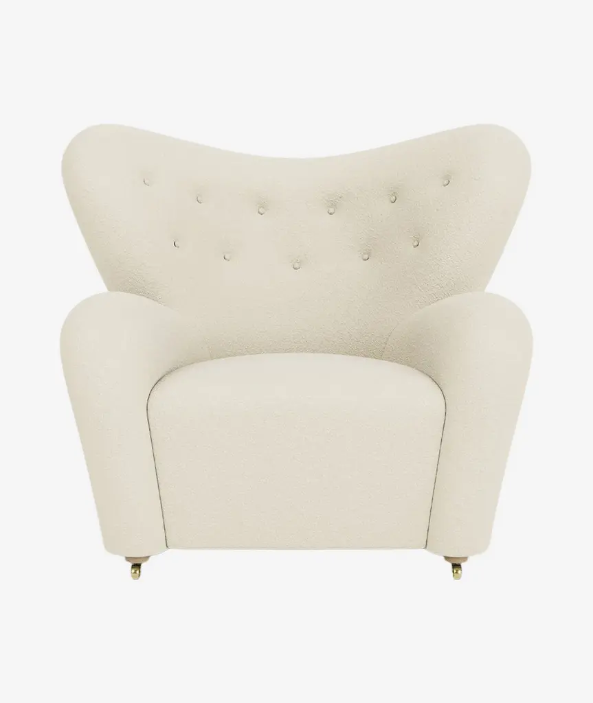 The Tired Man was launched at the Copenhagen Cabinetmakers’ Guild Exhibition in 1935 and has since become an icon of Danish design. The epitome of craftsmanship and comfort, the characteristically curved armchair was designed by Flemming Lassen to feel “as warm and snug as a polar bear cub in the arms of its mother.” Relaunched in 2015, the award-winning design is offered in plush upholstery, including sheepskin in a nod to the original, and with natural or dark-oiled oak heartwood legs and front brass casters for easy movement. A corresponding footstool ensures further comfort.