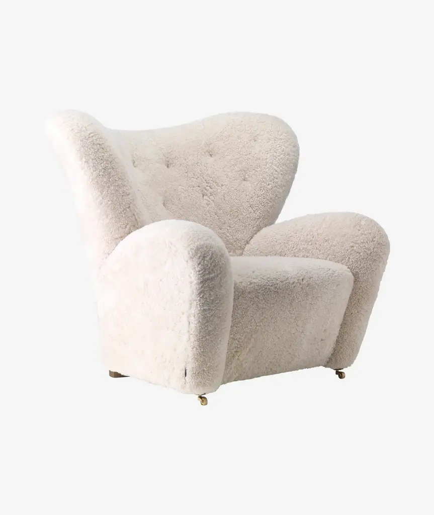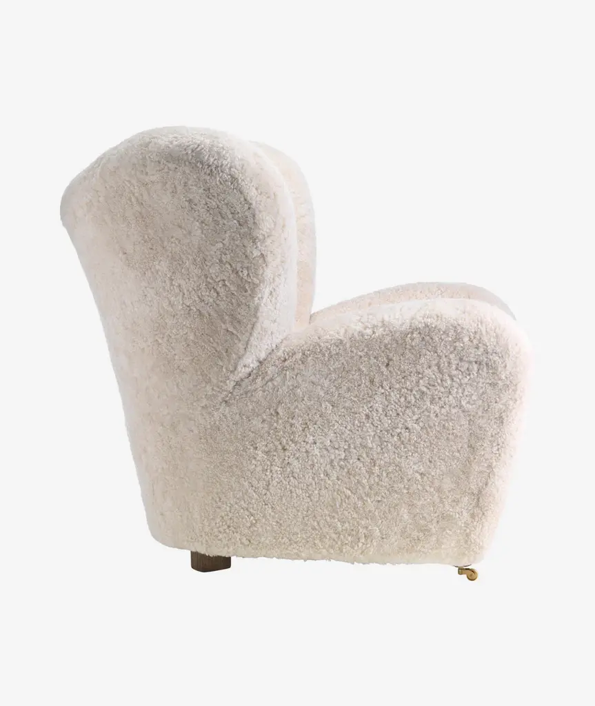 The Tired Man was launched at the Copenhagen Cabinetmakers’ Guild Exhibition in 1935 and has since become an icon of Danish design. The epitome of craftsmanship and comfort, the characteristically curved armchair was designed by Flemming Lassen to feel “as warm and snug as a polar bear cub in the arms of its mother.” Relaunched in 2015, the award-winning design is offered in plush upholstery, including sheepskin in a nod to the original, and with natural or dark-oiled oak heartwood legs and front brass casters for easy movement. A corresponding footstool ensures further comfort.