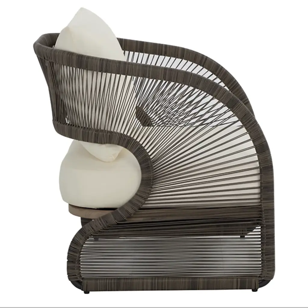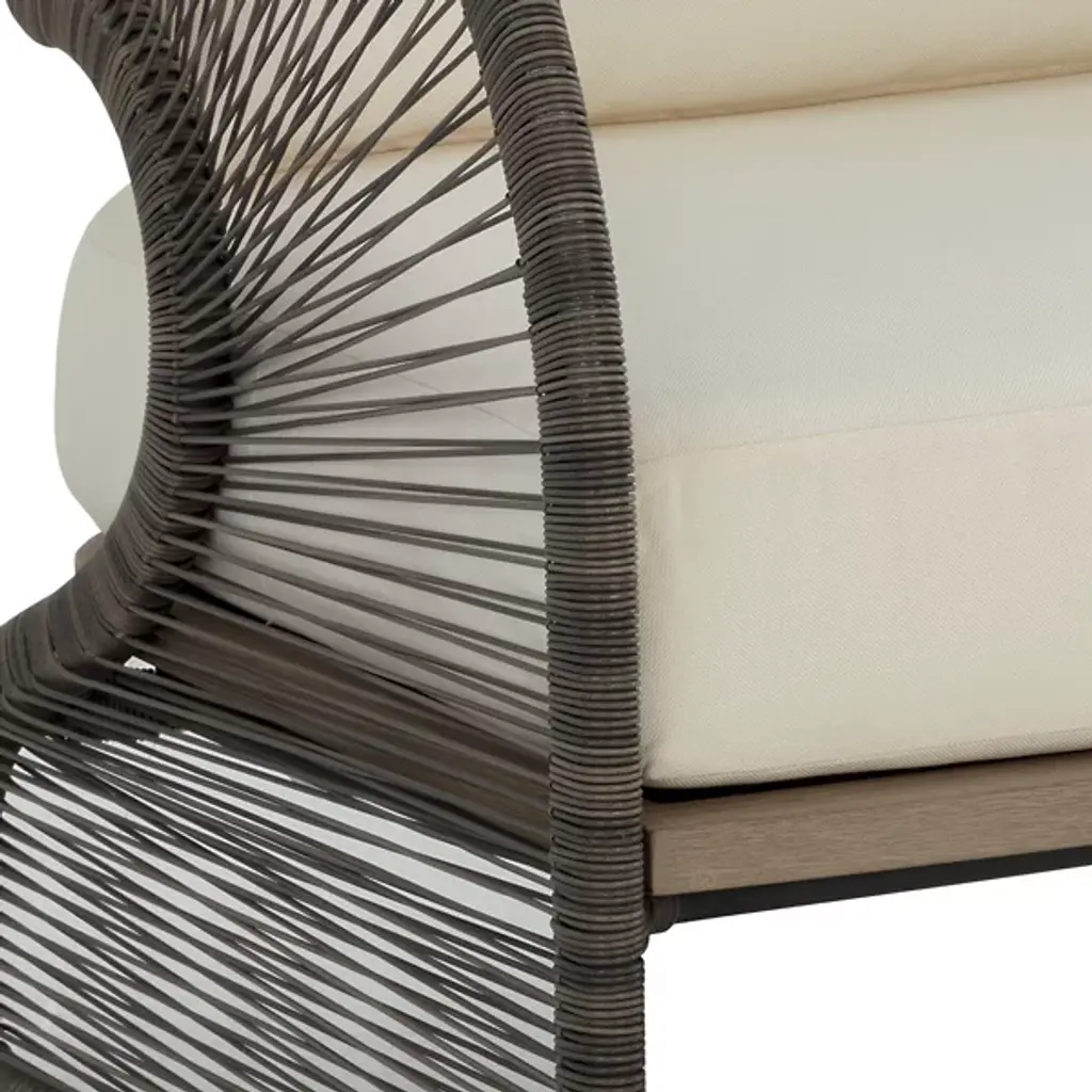 The Toulon Lounge Chair from Sunpan captures modern sophistication through its harmonious blend of materials and form. A graceful polyrod backrest in ore-grey seems to float within the sturdy black aluminum framework, while a drift brown teak seat grounds the design and supports plush Stinson cream cushioning. Built with beauty and resilience in mind, this versatile design features SVLK-certified Grade-A teak that naturally weathers to distinguished silver-grey. The chair's fluid silhouette brings sculptural interest to indoor and covered outdoor spaces, offering mid-century aesthetics with contemporary comfort.