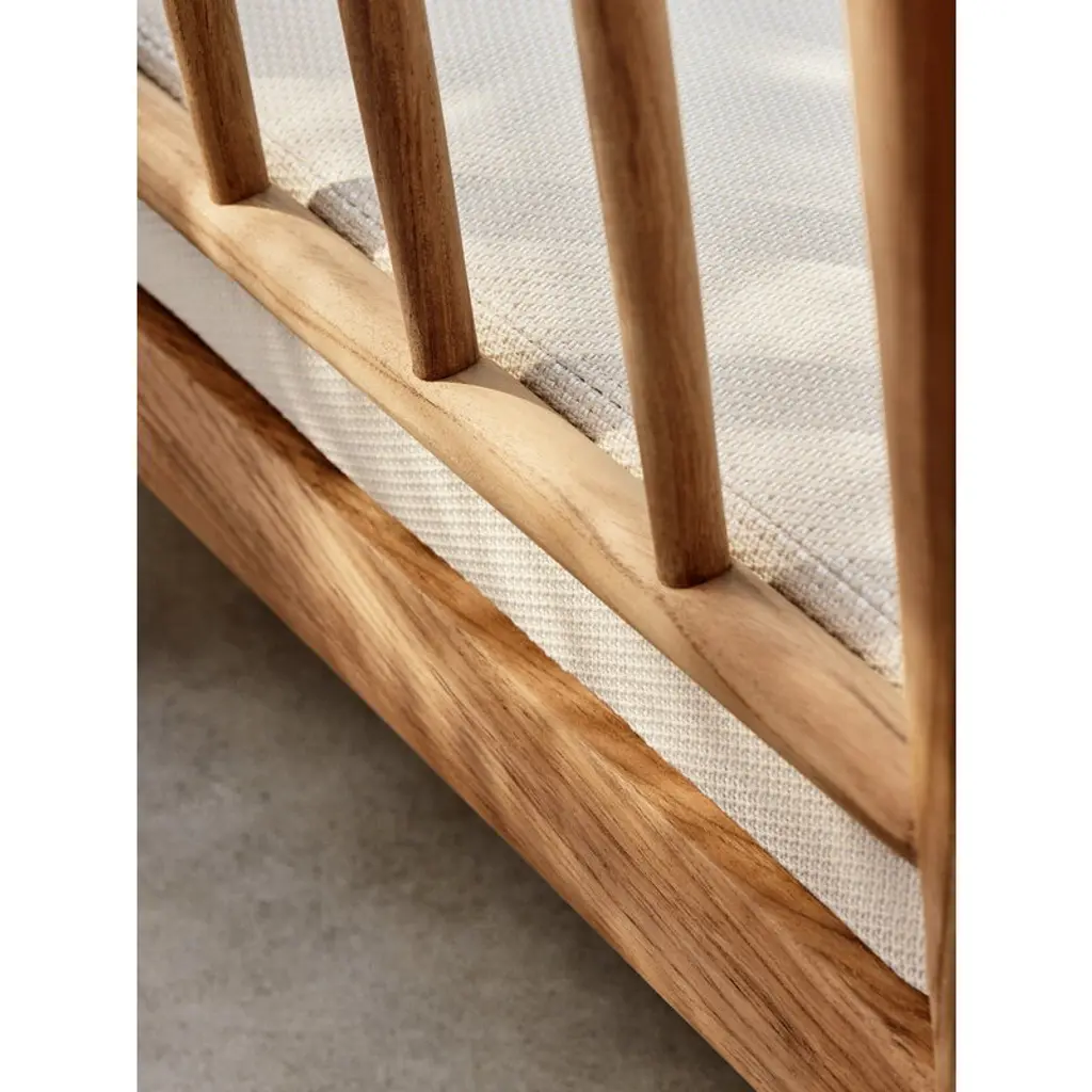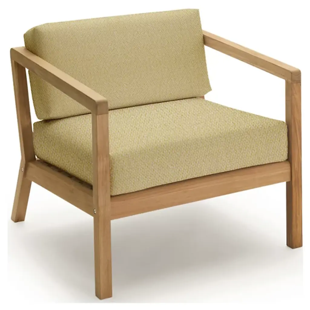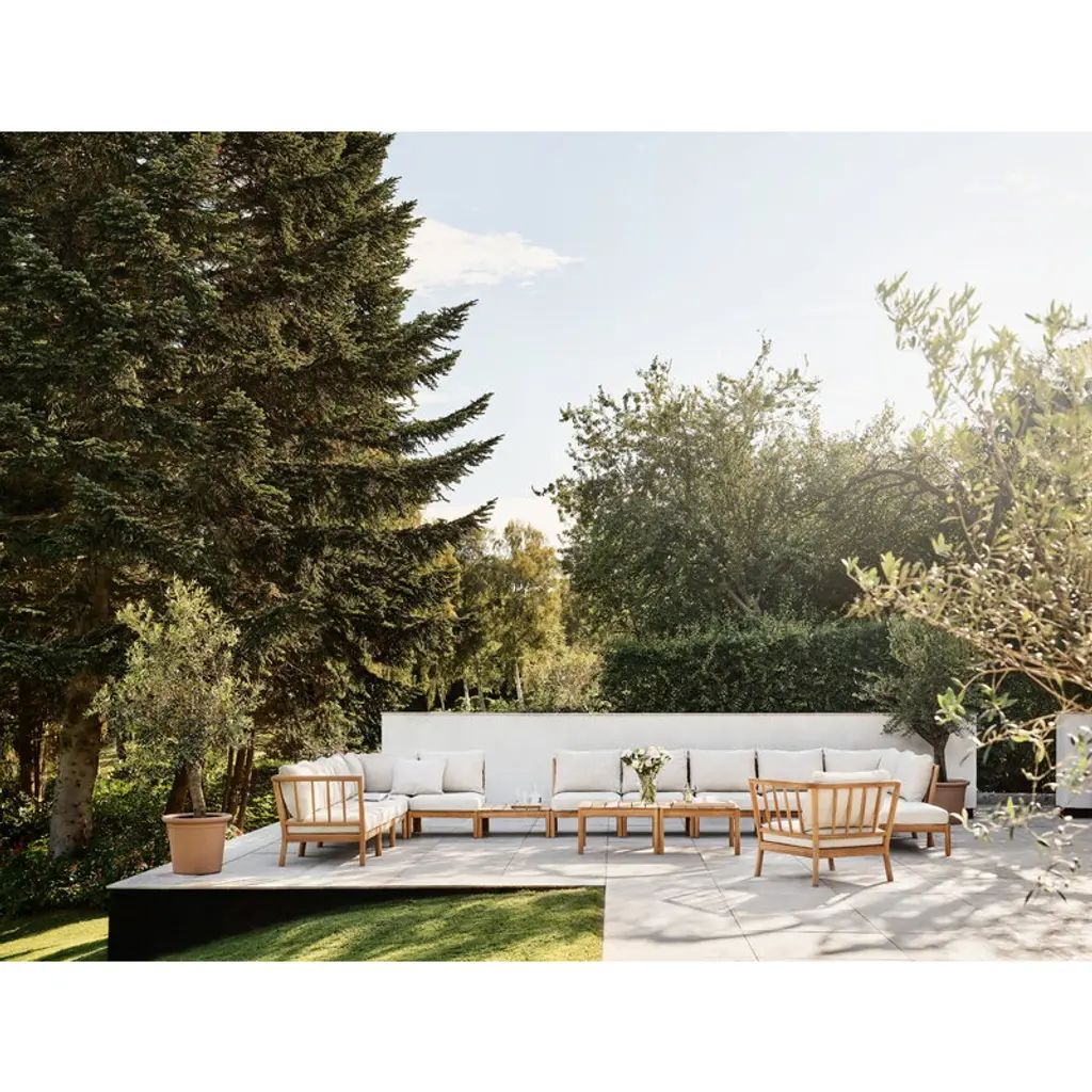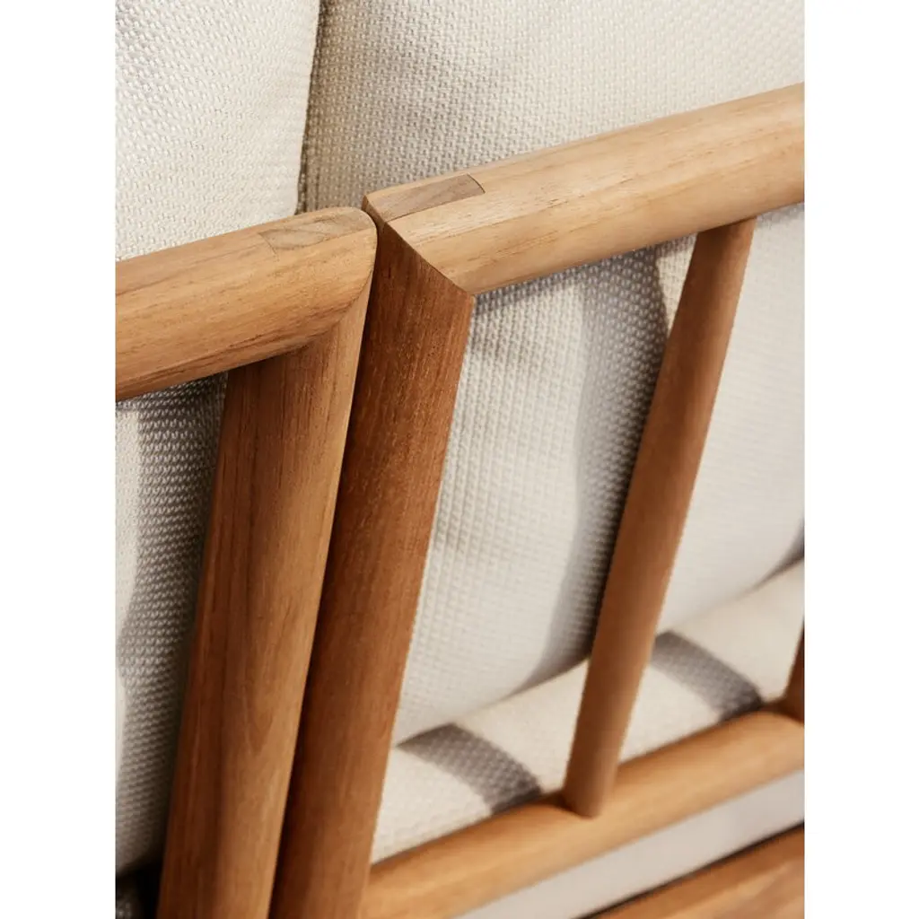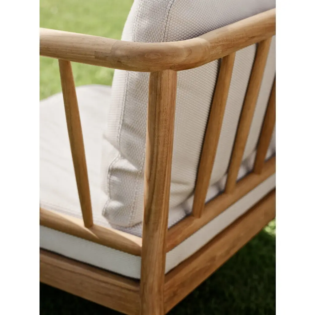 Skagerak's Tradition lounge chair is part of a teak wood outdoor collection that combines classic esthetics with a modular structure, making it easily customisable and thus suitable for spaces of various sizes. This lounge chair features a beautiful spindle backrest and plush seat cushions, which are upholstered in weather-resistant Sunbrella acrylic fabric and filled with quick-drying foam. Complete your inviting summer oasis with other pieces from the Tradition series. The Tradition patio furniture was created by Danish designer Povl B. Eskildsen. Having grown up with one foot in a teak furniture factory, Eskildsen's extensive experience with teak is evident in the furniture's skilful details and serene simplicity, which leaves room for the wood's natural beauty. You can preserve the teak's original warm tone by regularly oiling the surface or allow it to slowly patina to an attractive gray shade.