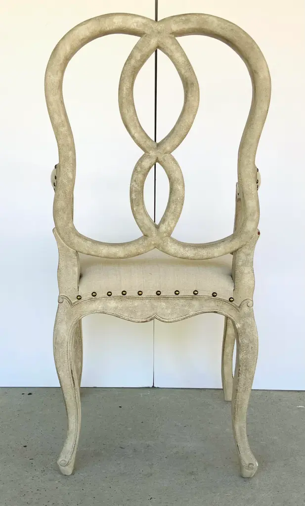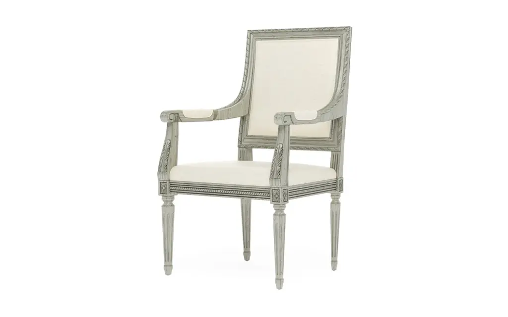 Transitional Greige Finished Craved Mahogany Ribbon Arm Chair