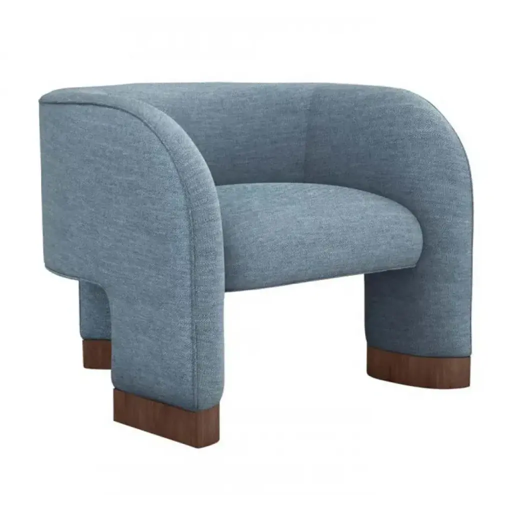 The Trilogy Chair is a luxurious option that delivers sophistication and glamorous style. All hardwood frame with interlocking construction. Advanced comfort spring suspension. Tight seat cushion and tight back with premium polyurethane foam and 100% polyester fiber. Wood legs accents in a walnut finish.