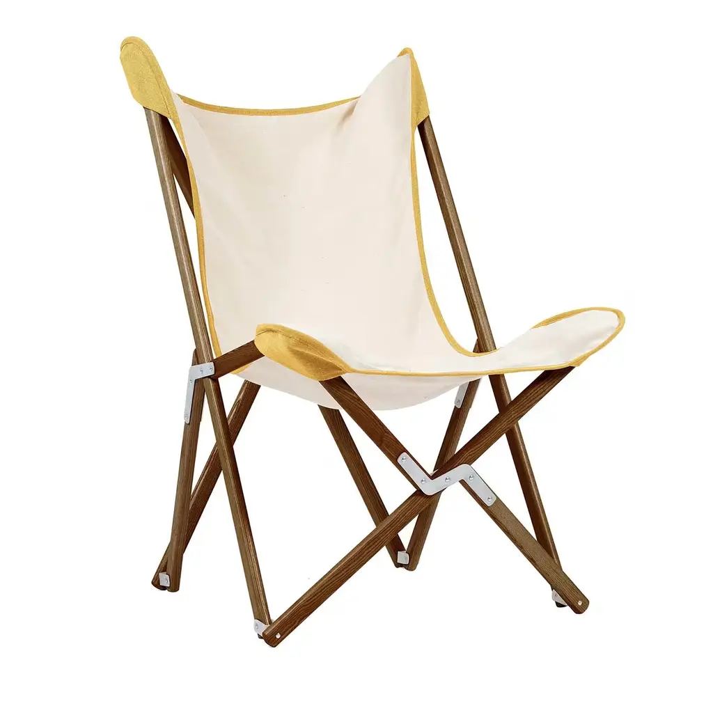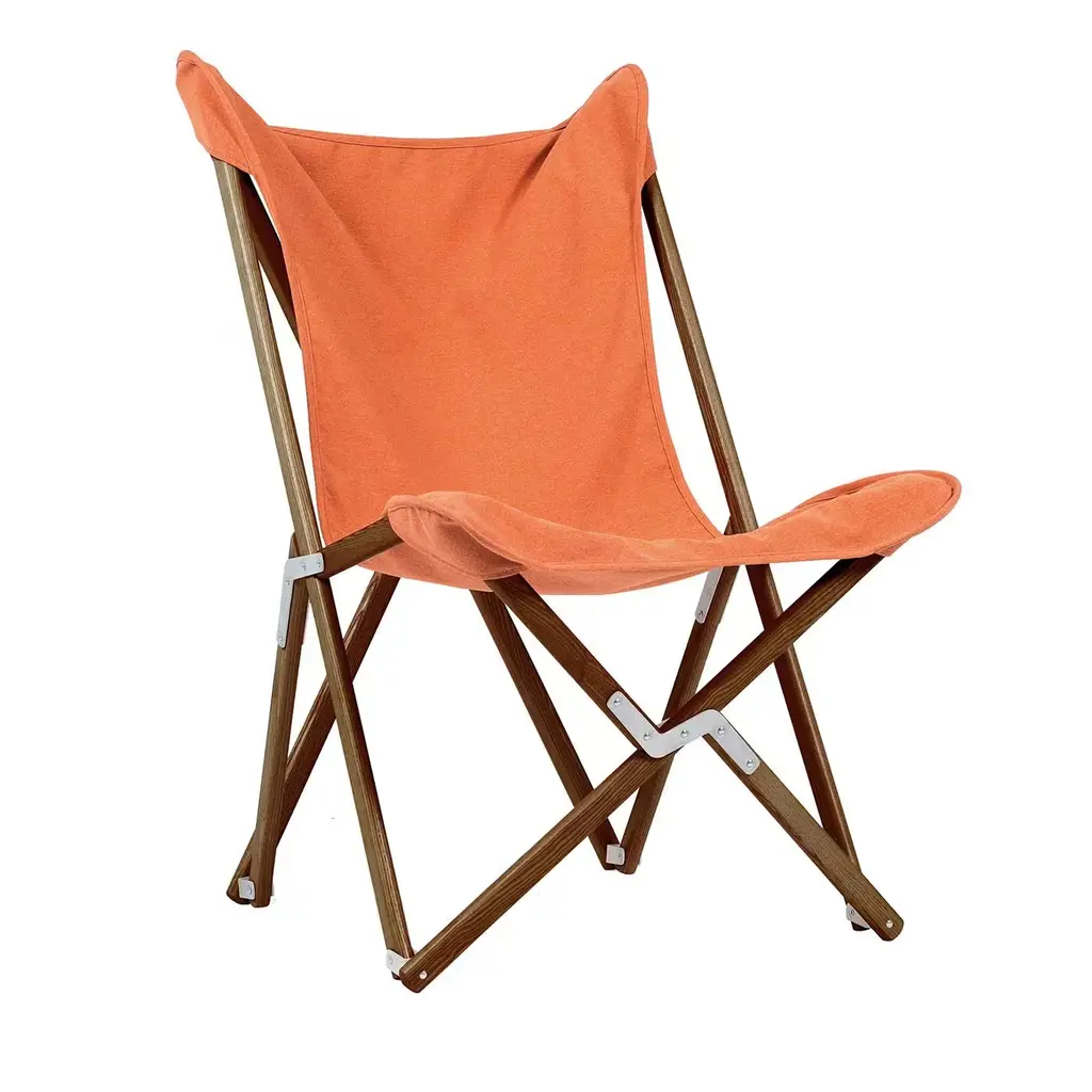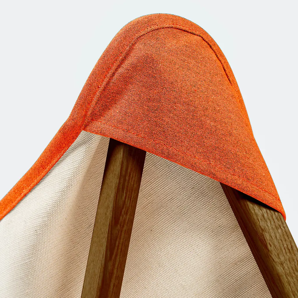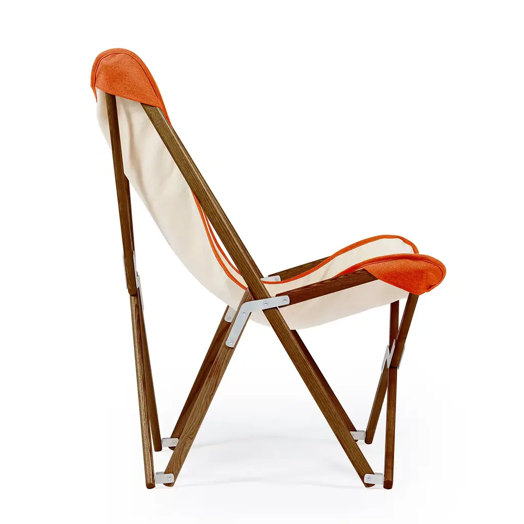 First designed in 1885, the Tripolina armchair gained recognition as the comfortable and versatile chair used by the Italian military troops in Libya. Its iconic silhouette is reinterpreted by renowned architects like Franco Albini and Giuseppe Terragni, and became an international icon. Telami crafts each chair by hand using the finest solid ash with a teak stain for the frame. For this version, seat and backrest fabric (a mix of 50% cotton and 50% jute) is in a delicate cream color, accented with details in Terracotta red made of 80% acrylic and 20% cotton. The seat is 32 cm high.