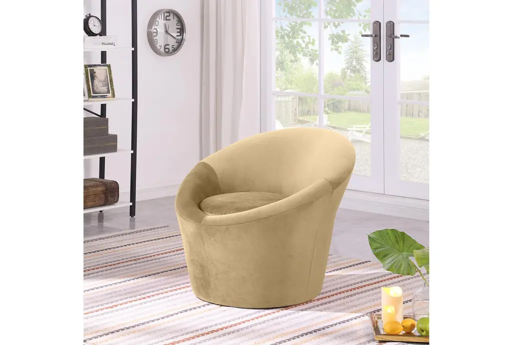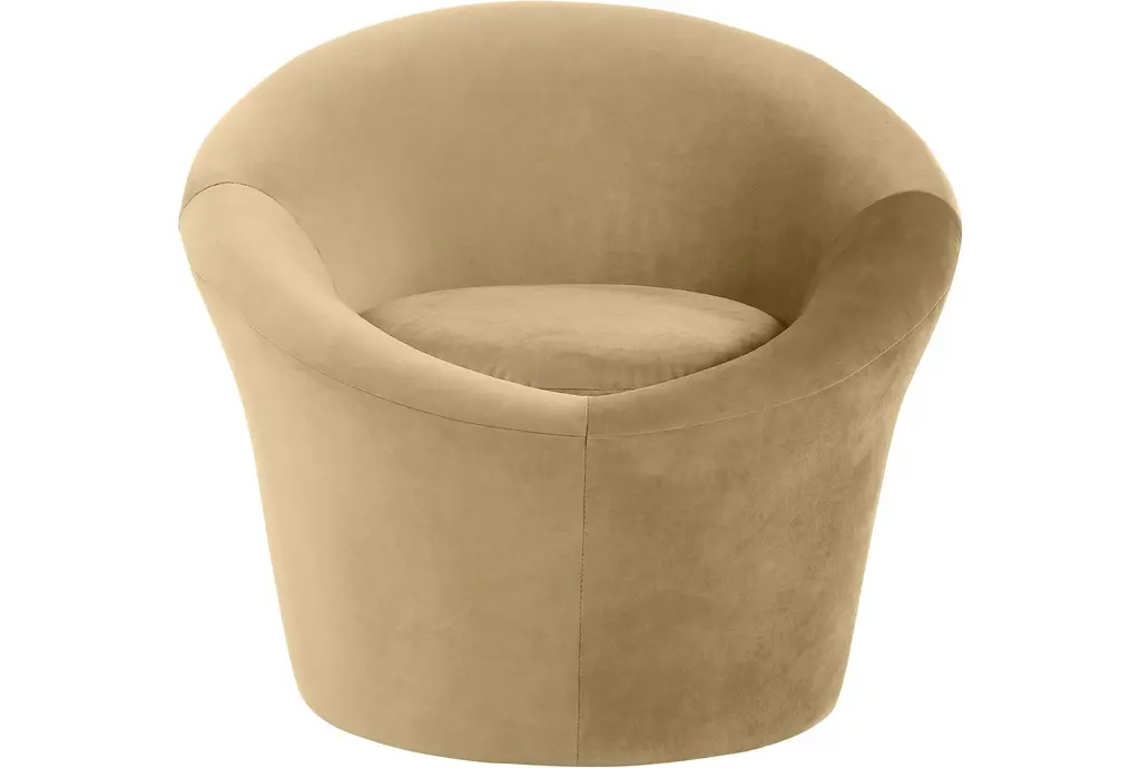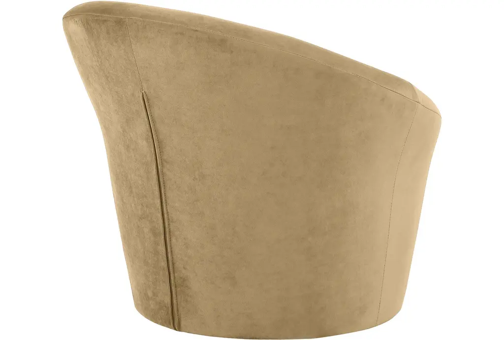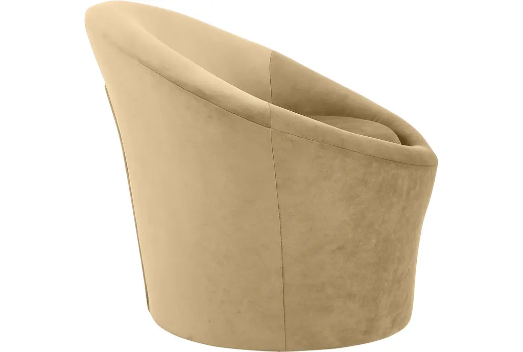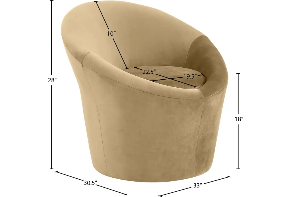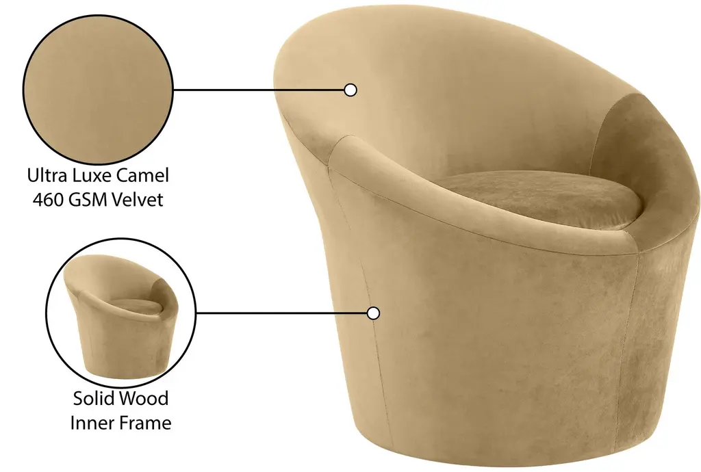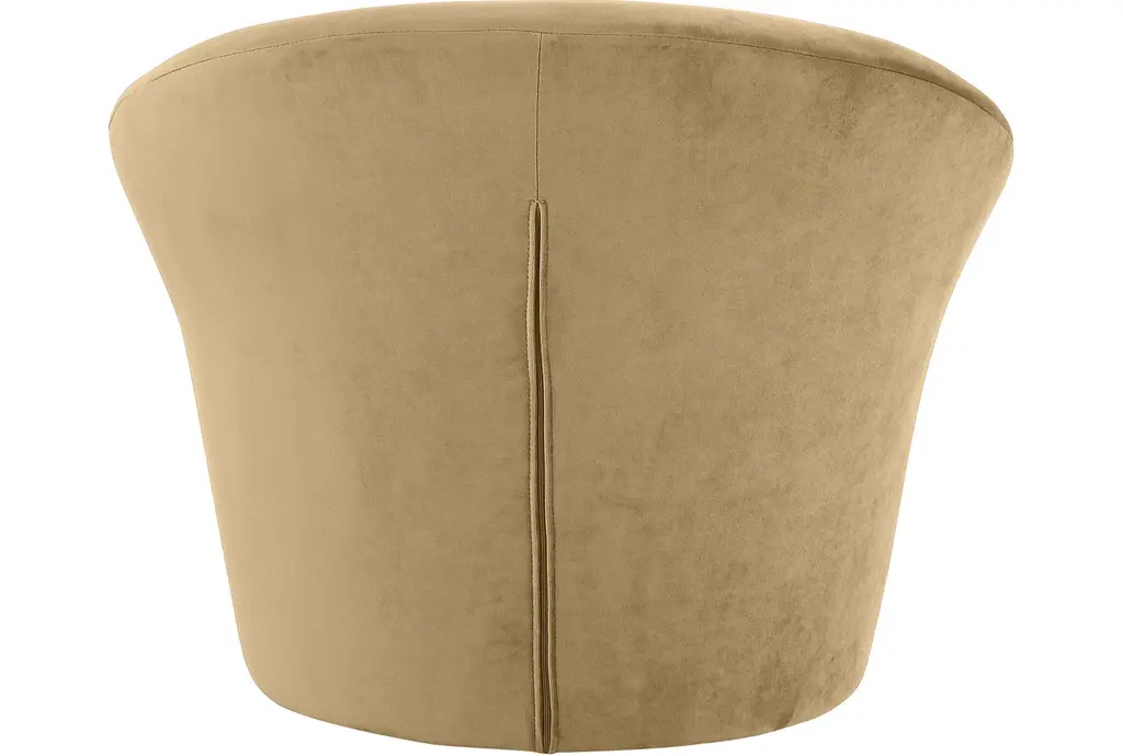 The Tristan Camel Velvet Accent Chair is a perfect addition to any living space, offering both comfort and contemporary style. Its curved shape and soft velvet fabric provide an inviting seating experience. The recessed armrests add an extra touch of comfort, making it an ideal choice for relaxation.