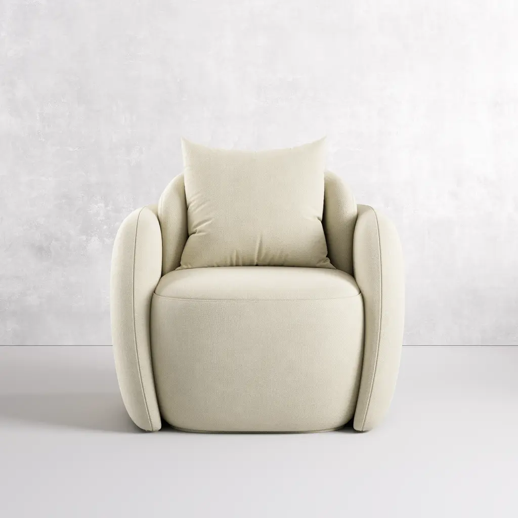 The rounded body of our Trosa lounge chair is playful and current. Curved lines are particularly trendy among design experts due to their soft, modern appearance. This almost-Scandinavian accent piece is as comfy as it is chic. Add our Trosa lounge chair to your living room, bedroom, or cozy nook. Dimensions: 33.5"W x 32.0"D x 29.0"H Tear Sheet