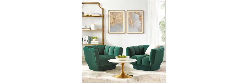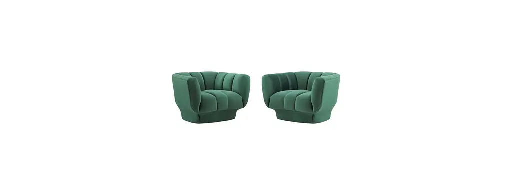 Energize your living room decor with Entertain Armchair Set of 2. Sit deeply in tactile luxury with vertical channel tufting that creates visual depth and a magnificent waterfall effect that spans the length of this vintage glamour armchair set. Entertain features plush dense foam padding with soft, stain-resistant performance velvet upholstery for a luxurious seating experience that delivers premium comfort. Entertain can support up to 300 lbs and rests securely on a rimmed base covered in matching velvet. Introduce this cozy, extra wide retro-modern centerpiece to your living room or lounge area.Vintage Glamour Armchair Set of 2Vertical Channel TuftingVelvet Polyester UpholsteryDurable Stain-Resistant FabricRimmed Upholstered BaseDense Foam PaddingArmchair Weight Capacity: 300 lbsOverall Product Dimensions: 35"L x 79"W x 26"HArmchair Dimensions: 35"L x 39.5"W x 26"HWeight (LBS): 92