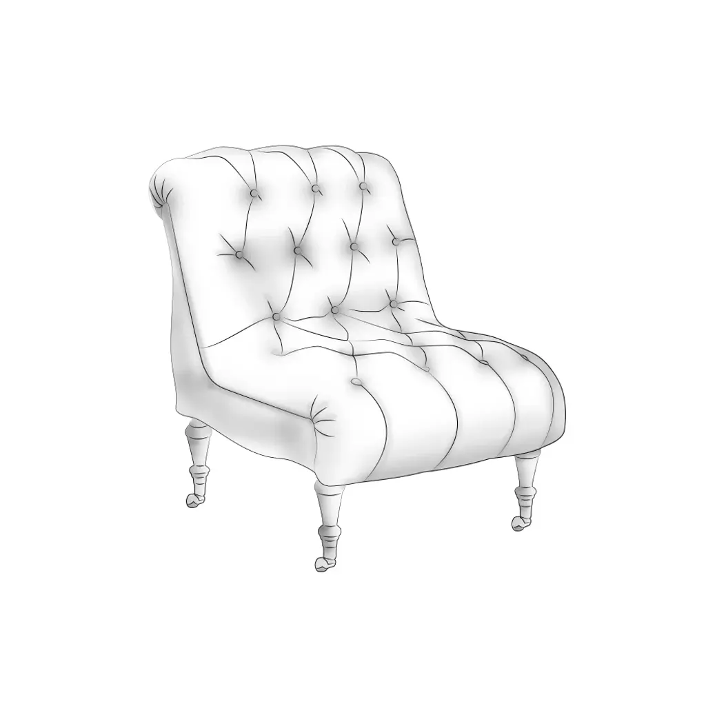 Dimensions: 26W x 34D x 34H, SH 18 COM: 4 yards Still considered a Slipper Chair, but sized for a "longer sit." Incredibly comfortable, and unassumingly stylish, this sling backed, tufted, chair is one of our favorites. It's lean an elegant, and you'll be hard pressed to find anything like it elsewhere. ** Please Note, if using COM, production will not start until we receive your COM FORM Made in America