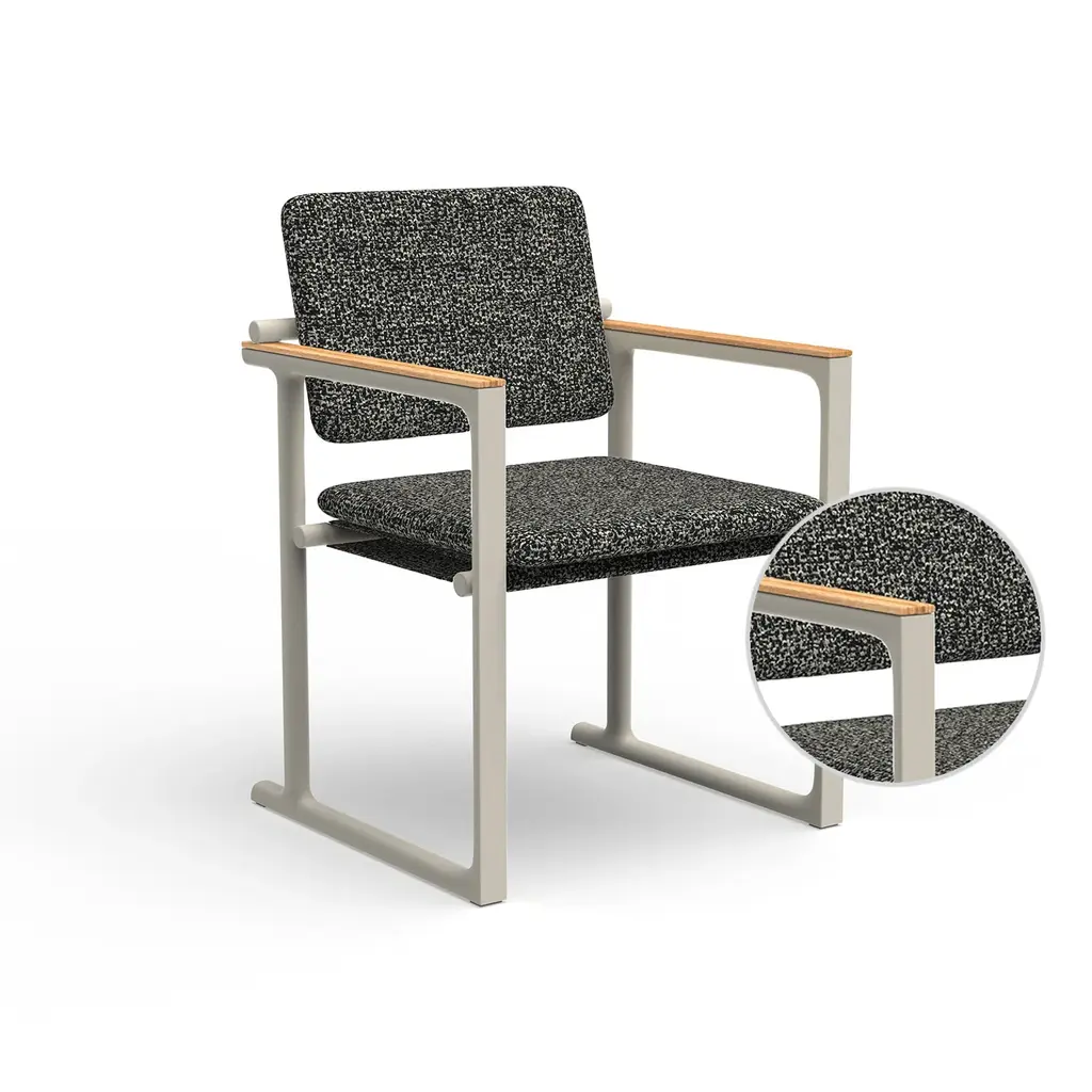 Unwind in comfort and style with the Tulum Lounge Chair from Vondom. Crafted by designer Eugeni Quitllet, this chair seamlessly combines high quality materials and modern technology for a sleek and sophisticated design. With a durable aluminum profile, Indonesian teak wood accents, and a cozy, plush cushioning, Tulum offers both longevity and comfort. Highlights