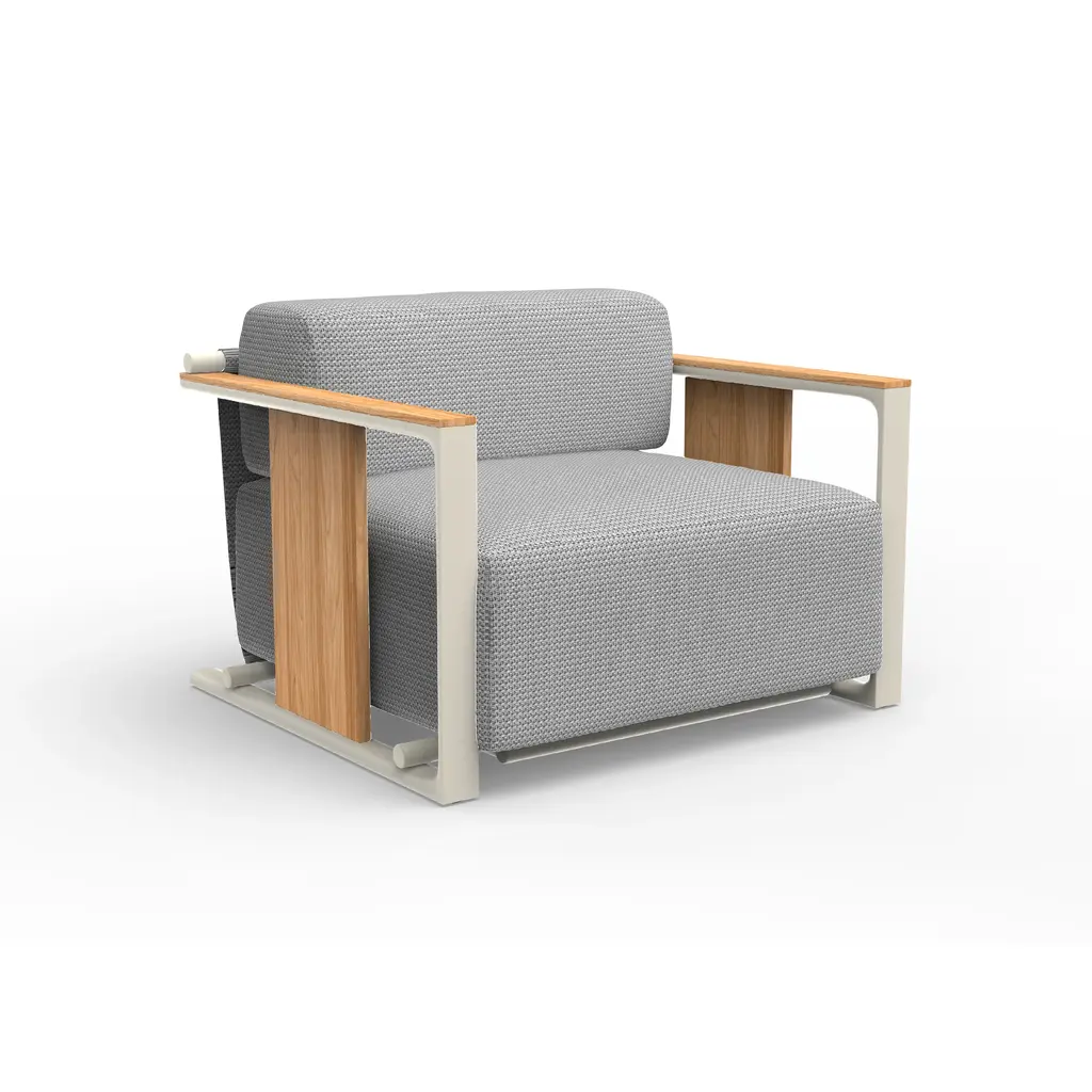 Unwind in comfort and style with the Tulum Lounge Chair from Vondom. Crafted by designer Eugeni Quitllet, this chair seamlessly combines high quality materials and modern technology for a sleek and sophisticated design. With a durable aluminum profile, Indonesian teak wood accents, and a cozy, plush cushioning, Tulum offers both longevity and comfort. Highlights