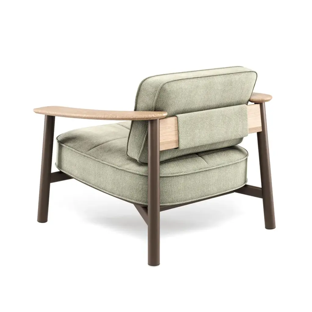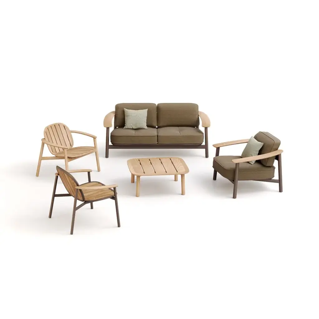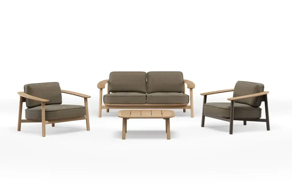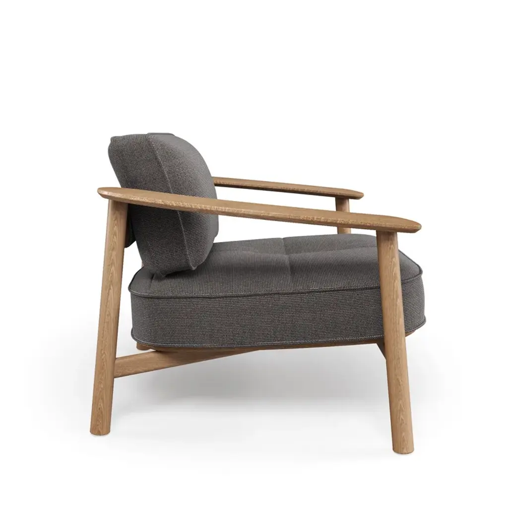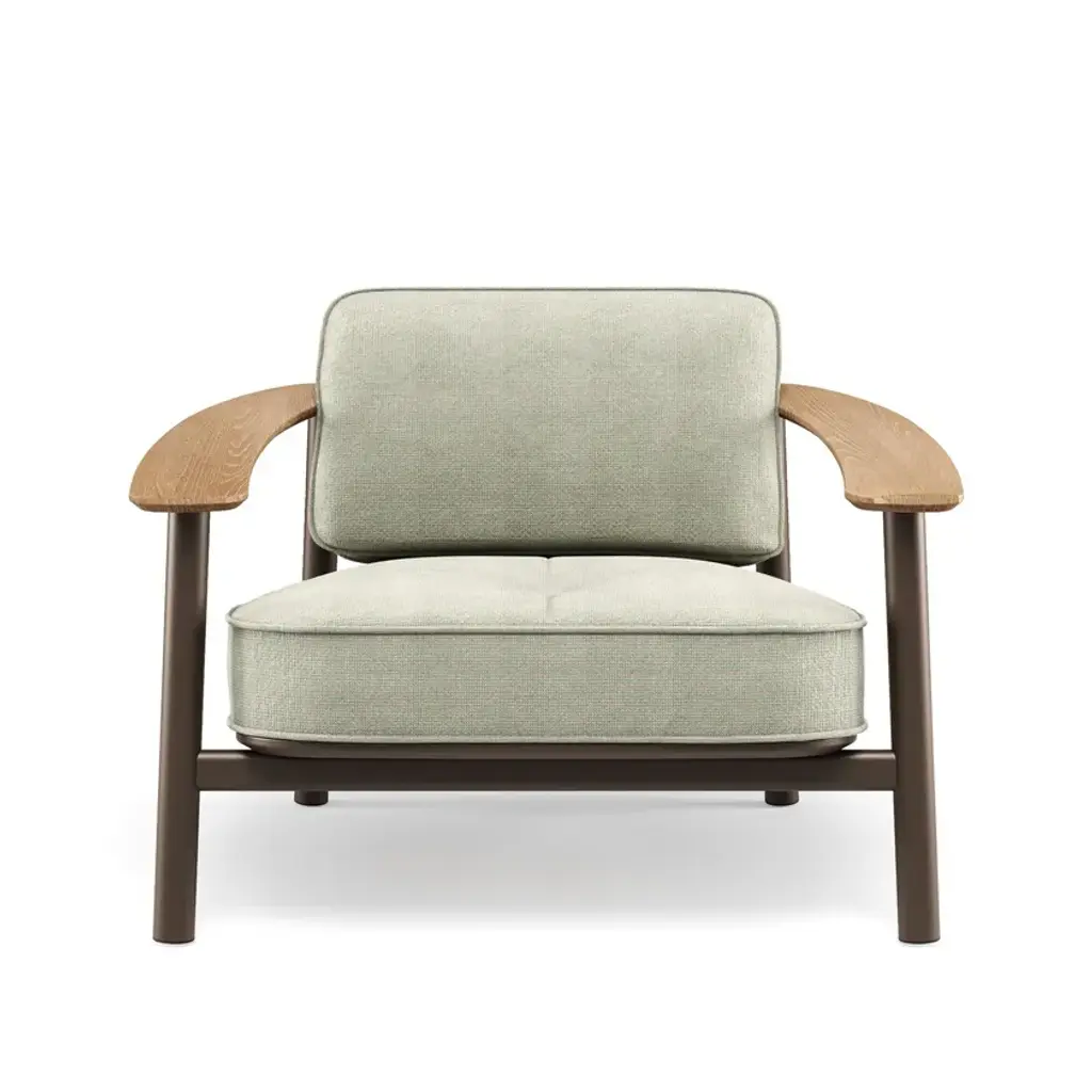 Twins is a fabric garden armchair with 100 % FSC teak frame. Available in aluminium plus teak version.Twins is a collection with a strong identity and the result of the perfect blend between the Emu know-how and the designer Sebastian Herkner’s skills. It embodies two twin versions: one is totally in 100% FSC teak, while the other one is an interesting material-mix between pure wood and one of the main components of EMU products: the aluminum.Twins Benefits - FSC 100% Teak, known for its resistance to outdoor use - Products without protective oils, natural finish - Cushions with fixing to the structure to guarantee the correct position of the set - The cushions have a completely removable cover and are made with a water-repellent lining - All structures have adjustable feet - Possibility for different mixing and matching between the 2 versions or with other EMU collections - Even the teak version is suitable for marine environments - The armrest in teak is perfect for hot areas and more comfortable than metal armrests