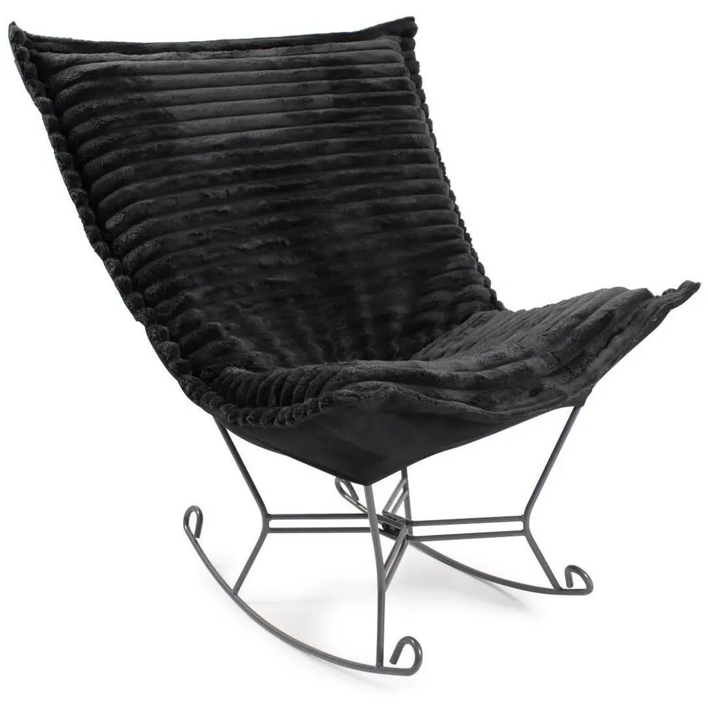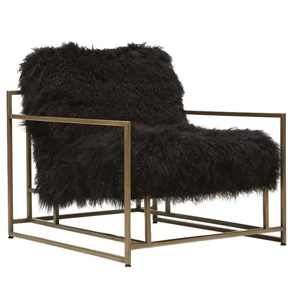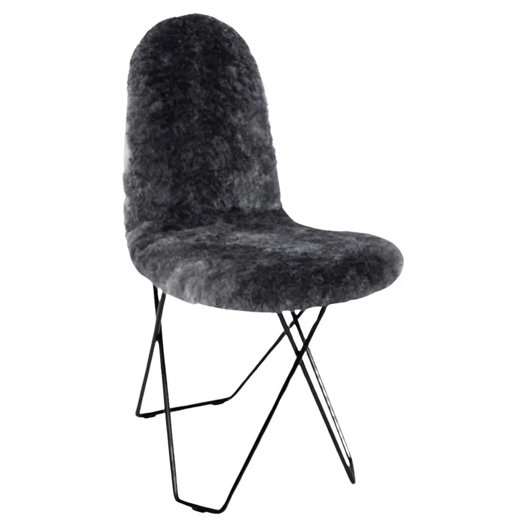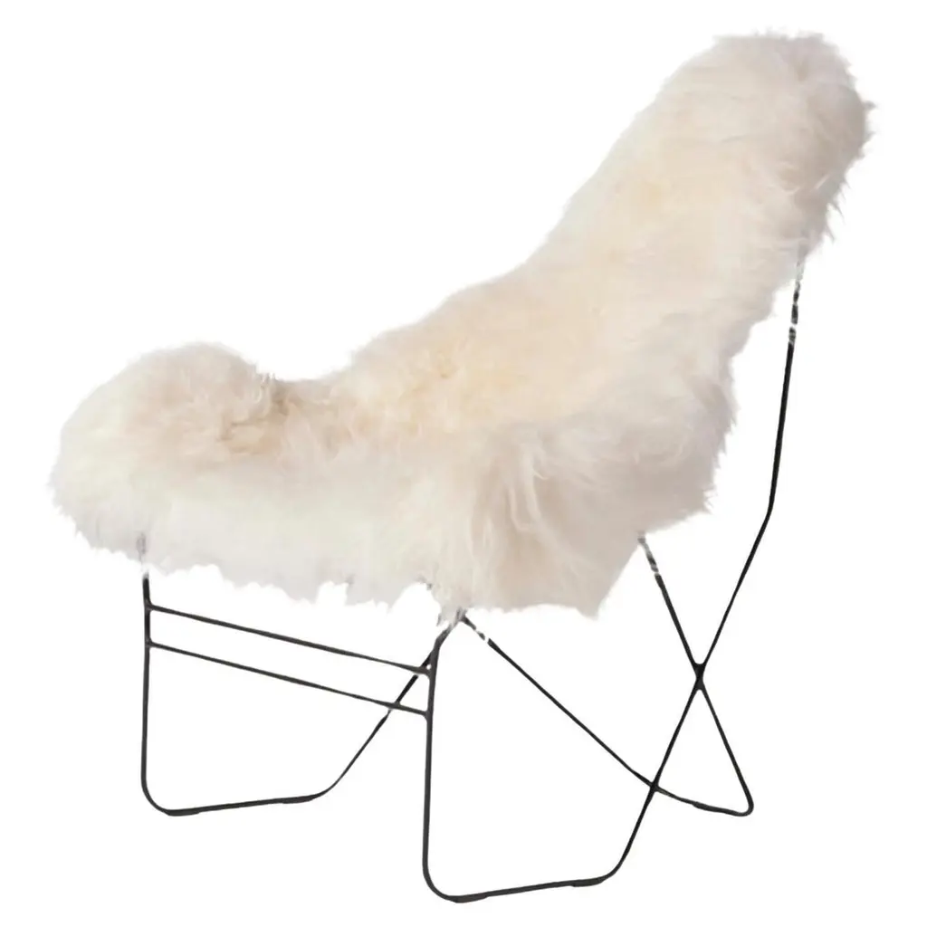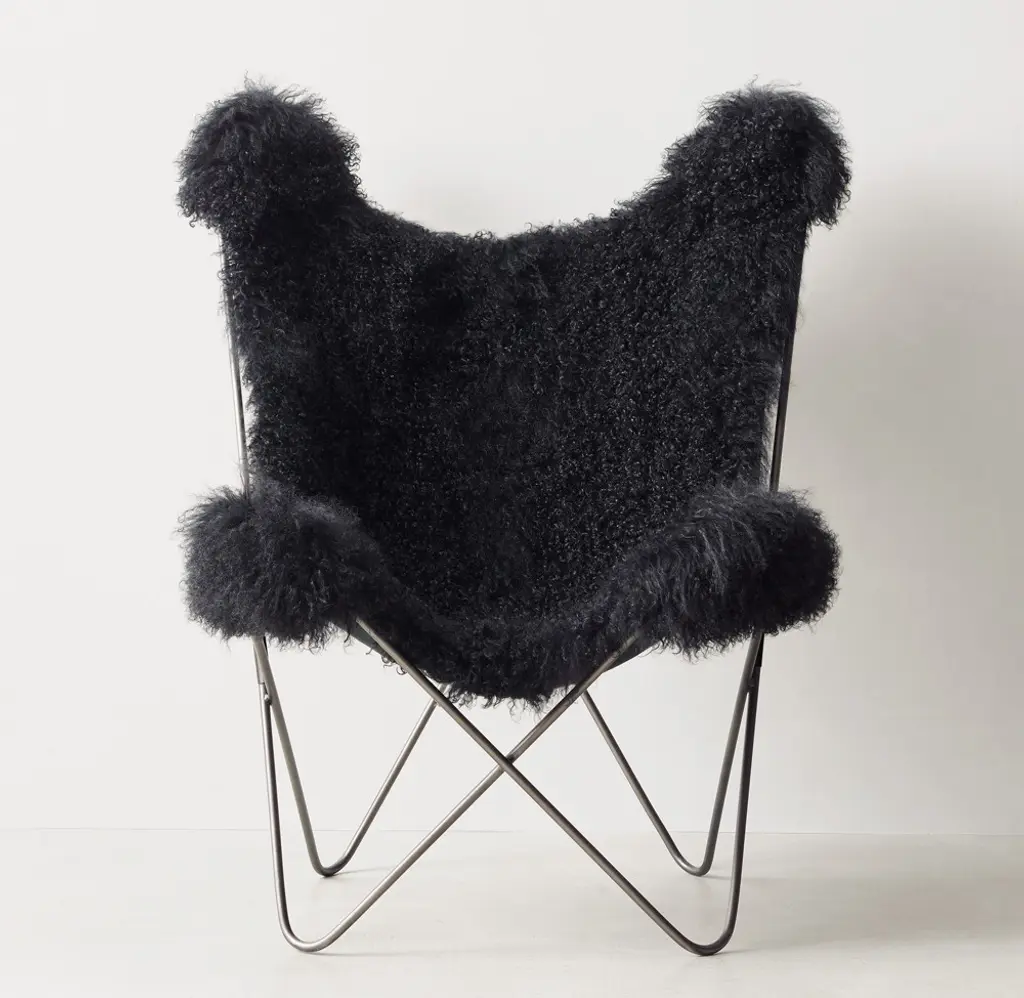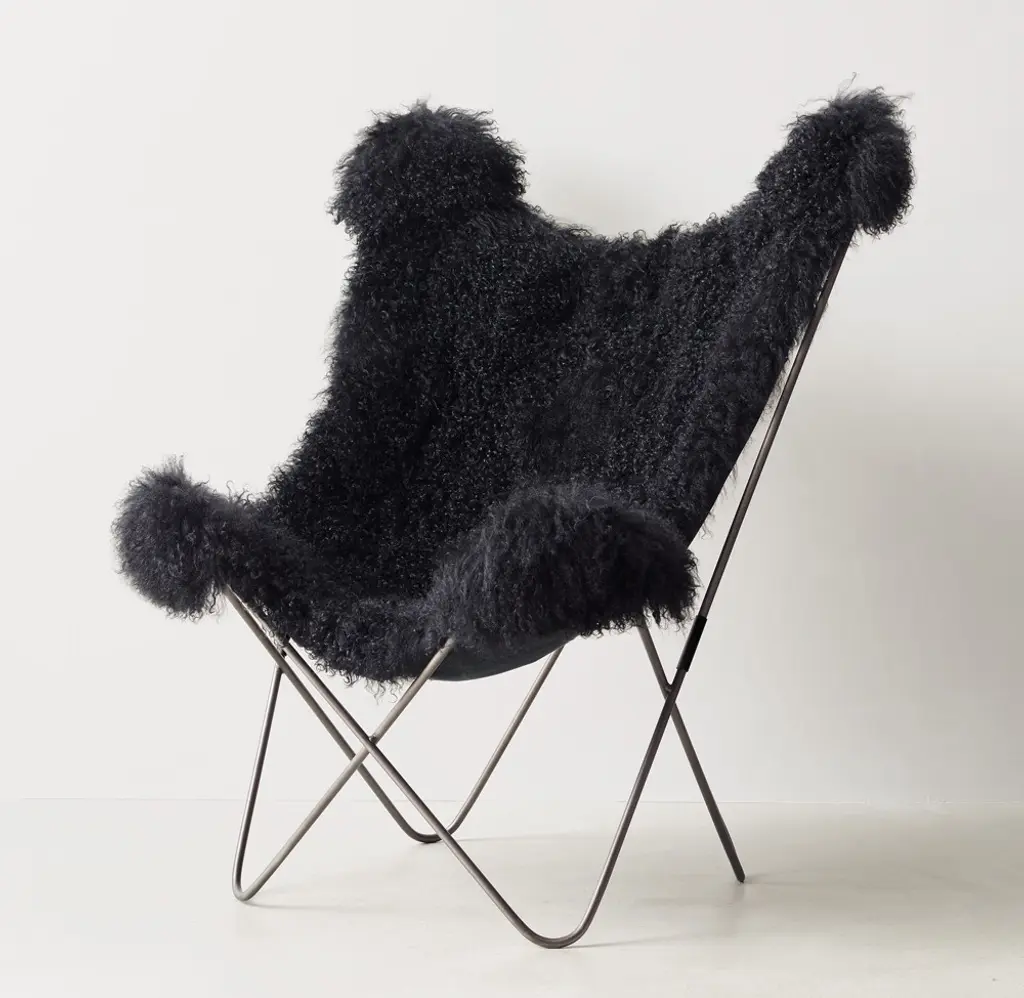 Tye Black Mongolian Lamb Butterfly Chair - Dark Steel