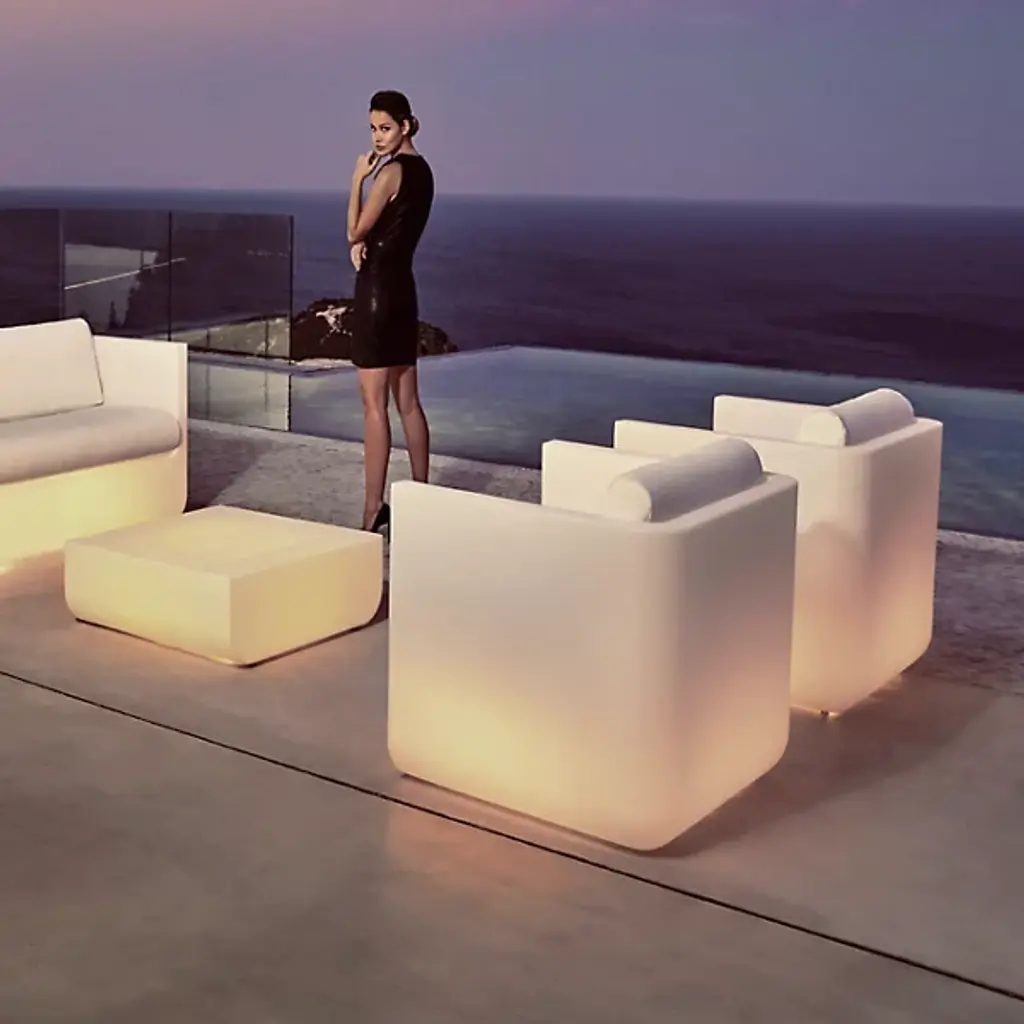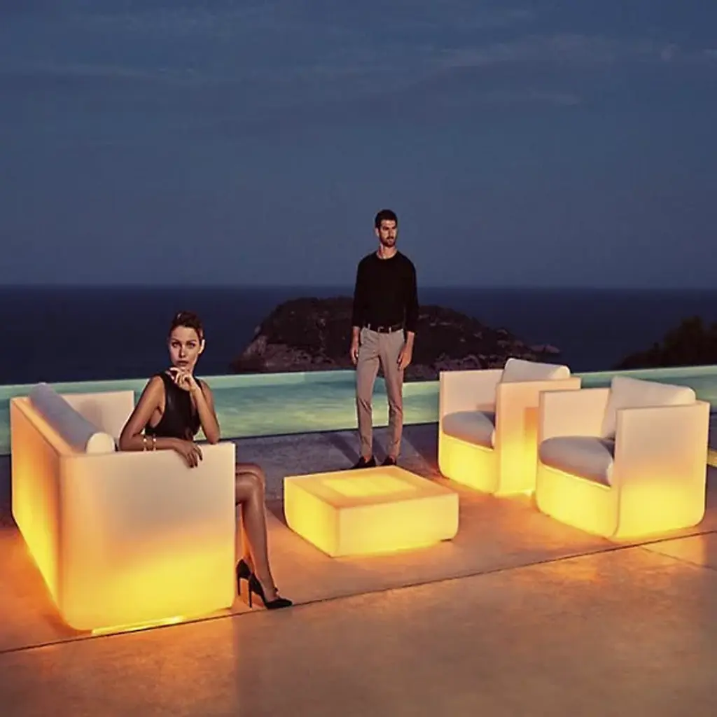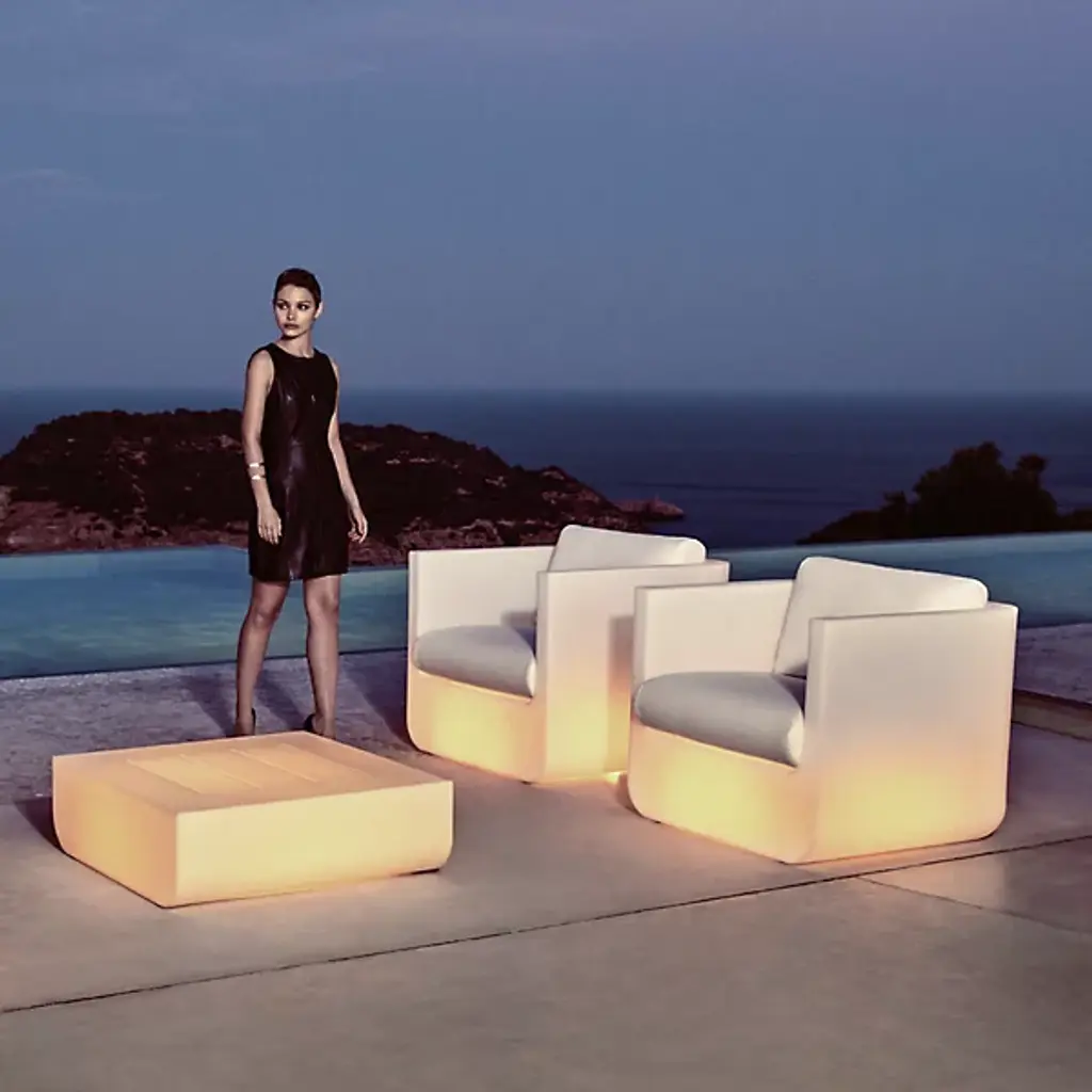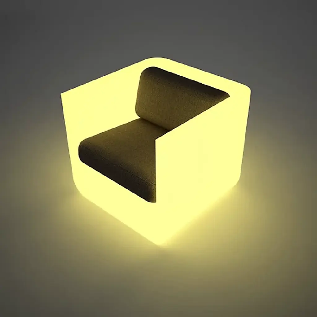 The Ulm Lounge Chair Illuminated is designed to have qualities of utility and function in mind. Highly adaptable and easy to maintain. Perfect for the outdoors and can also be used indoors, cushions are included. Highly durable polyethylene resin makes up the genetic profile of the chair, giving it the ability to tackle the toughest weather conditions without affecting looks, quality, or functionality. 100% Recyclable.