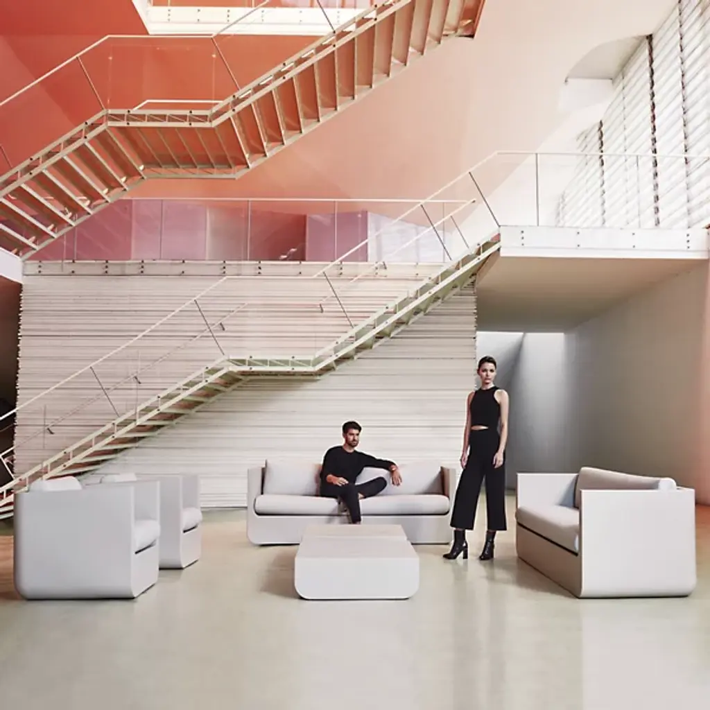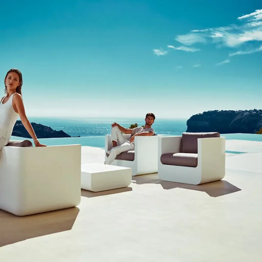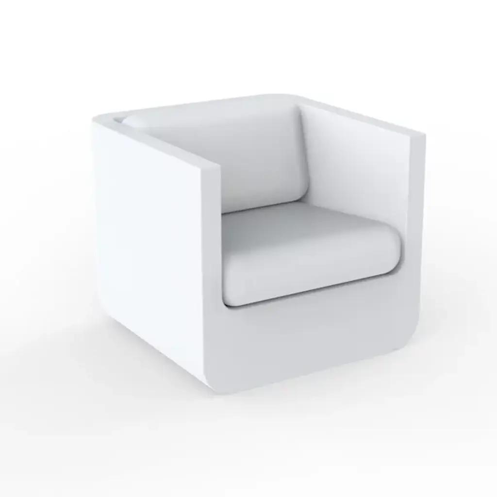 The Ulm Outdoor Lounge Chair by Vondom is a functional seating option that strikes a balance between design, technology, and ergonomics. Designed by Ramon Esteve, the build of this lounge chair is based on basic cube, prism, and spherical shapes. Embracing the approach of the Ulm School, this design features a frame made from polyethylene resin using rotational molding to produce a sculptural piece that can work both indoors and out. A comfortable cushion is cradled within its form, offering spaces an artful spot to sit back and relax in.