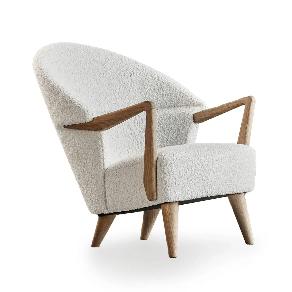Relax and recharge in the UnFluffy Lounge Chair, a masterpiece by Fredrik A. Kayser for Eikund. Its sloping armrests embrace you in comfort, while its tailored upholstery makes it a versatile counterpart to the Fluffy Lounge Chair. Designed while working at Rastad & Relling Tegnekontor, Kayser's artistic touch transforms this chair into a floating cloud of luxury. Experience the perfect blend of form and function with the UnFluffy Lounge Chair. Highlights