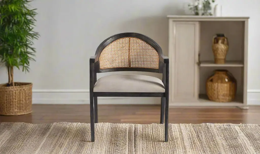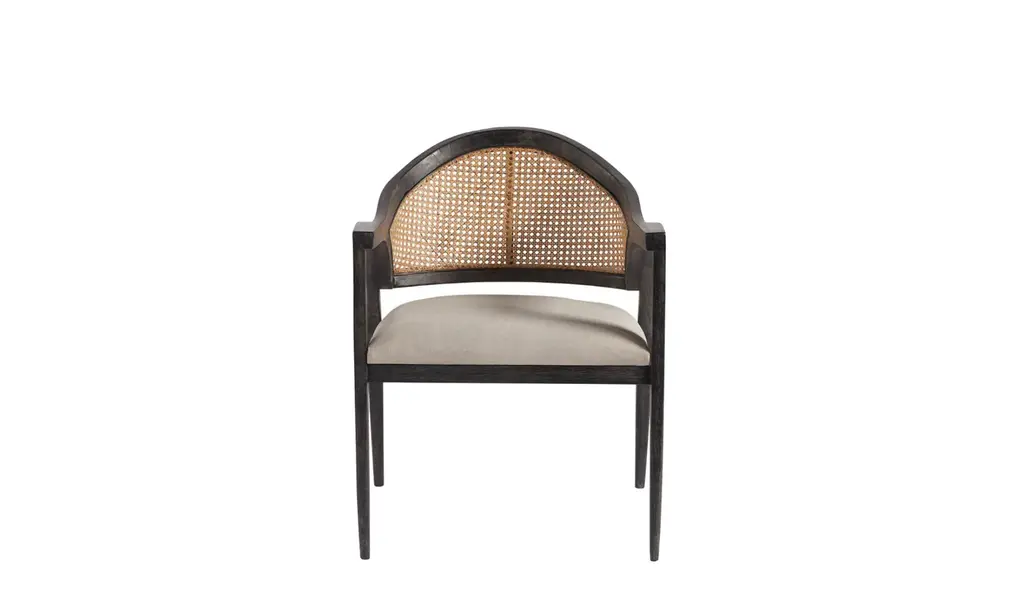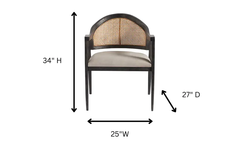 The Universal Modern Dexter Accent Chair brings a refined touch to any living space with its harmonious blend of textures and clean lines. The upholstered seat, featuring a neutral tone, is carefully designed to provide exceptional comfort while complementing the striking dark Onyx-finished frame. Its standout feature is the intricately woven back detail, which adds a layer of visual interest and artisanal charm. Whether placed in a living room, bedroom, or office, this accent chair seamlessly balances functionality with style. Crafted with precision and durability in mind, the Dexter Accent Chair is as practical as it is elegant. The thoughtful design ensures ergonomic support with a seat height of 20 inches and armrests positioned at 27 inches for optimal comfort. The sleek frame height of 34 inches offers a contemporary silhouette, making it an ideal addition to modern interiors. Its compact dimensions allow it to fit effortlessly into various settings, adding a sophisticated touch to smaller or larger spaces alike.