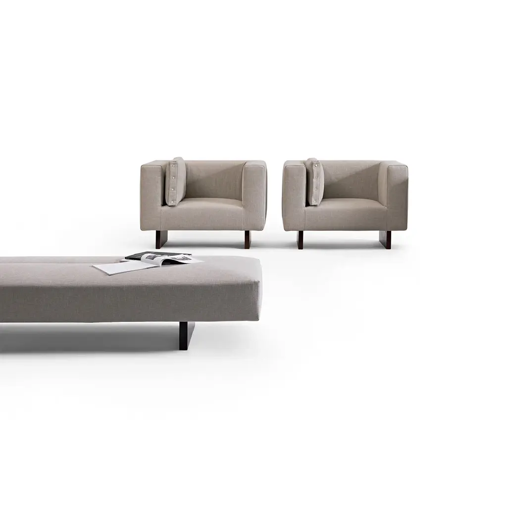Experience luxury and comfort with our Upholstered Square Armchair from Dema Le Foglie. Crafted with a sturdy metal frame and high-quality foam padding, it offers unparalleled durability and support. Complete with removable cushions and a variety of fabric and leather options, it's a timeless addition to any room.