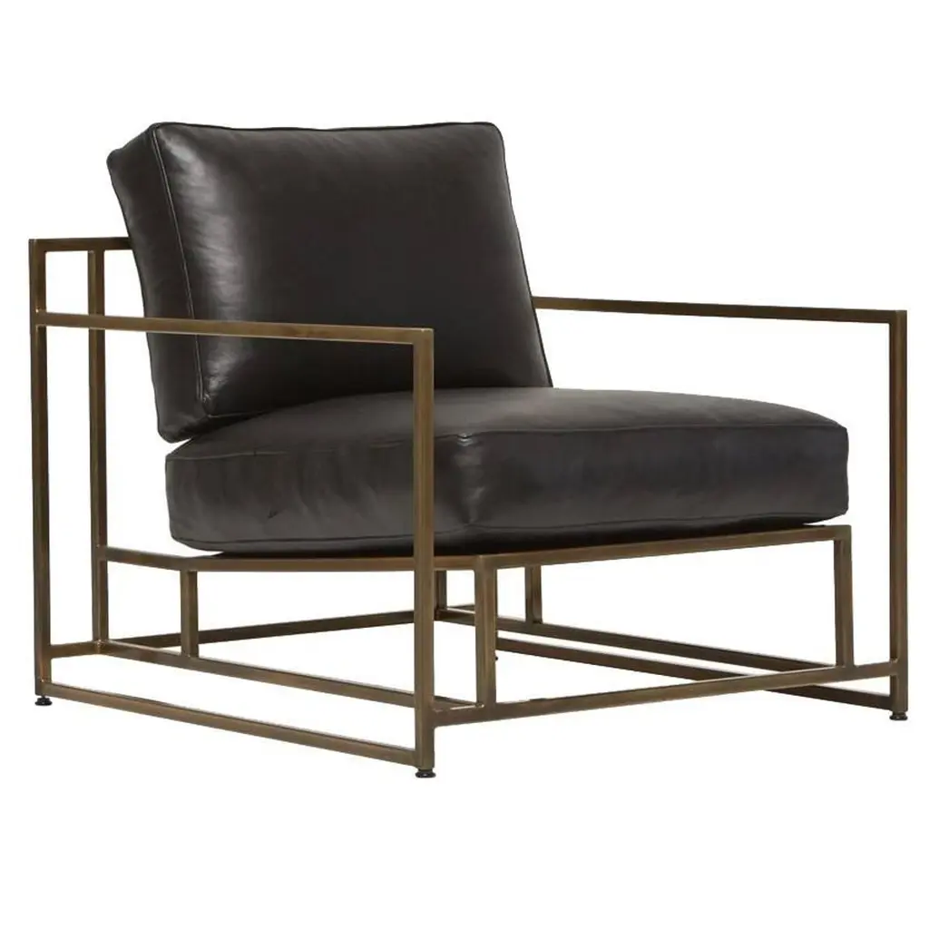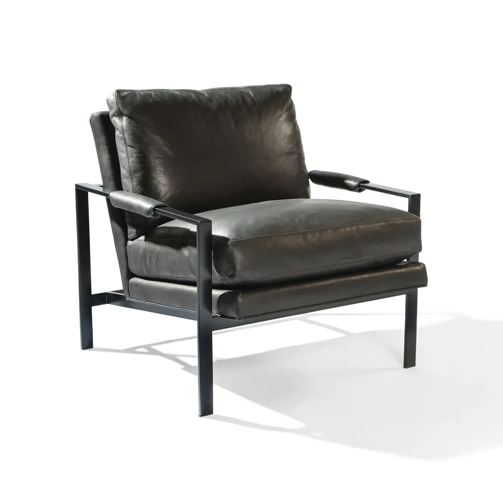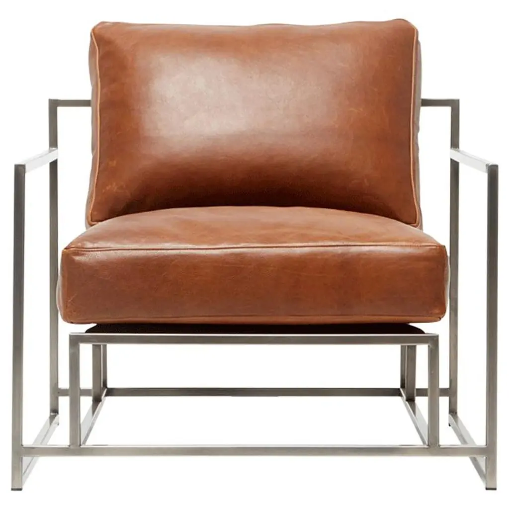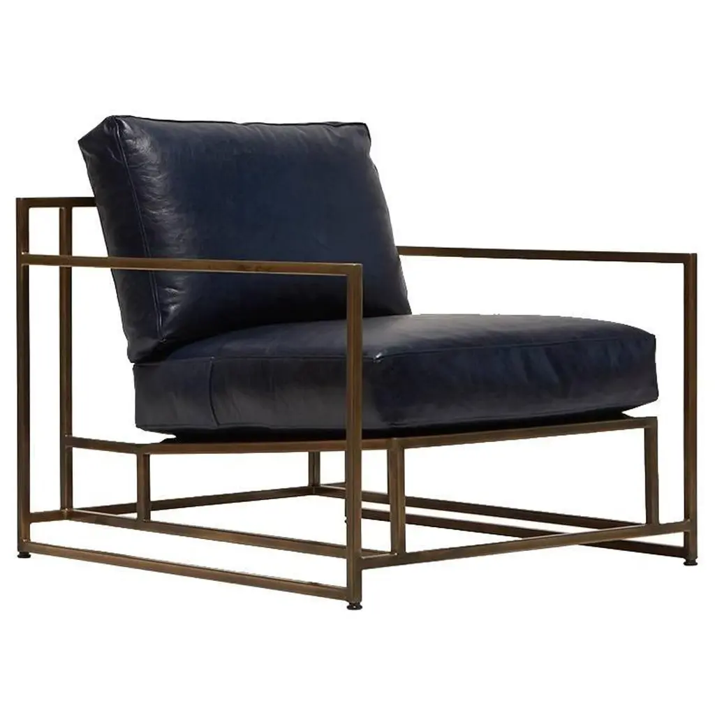 The Inheritance Armchair by Stephen Kenn is as comfortable as it is unique. The design features an exposed construction composed of three elements - a steel frame, plush upholstery, and supportive belts. The deep seating area is perfect for a relaxing lounge experience. Every Stephen Kenn piece is made to order through our Los Angeles studio in partnership with a number of small businesses and fabricators in the LA area. With this highly customizable armchair you can select from a wide range of finishes and materials to complement your home and lifestyle - please message us to see our Customization Guide with all available options.This version of our Inheritance Armchair is upholstered in grey nubuck leather from the Valhalla Collection by Moore & Giles. The foam seat cushion has been wrapped in down for added comfort and sits atop a blackened steel frame. The armchair is strapped with support belts featuring indigo cotton webbing, cognac leather, and marbled rust buckles.