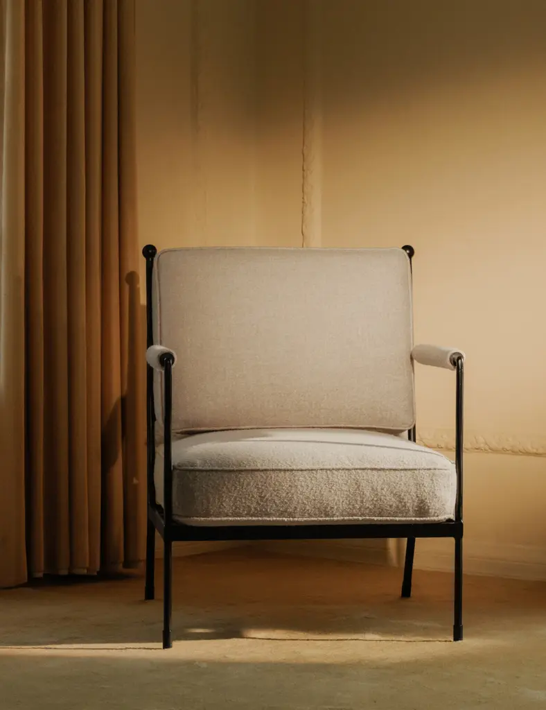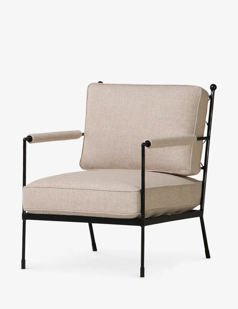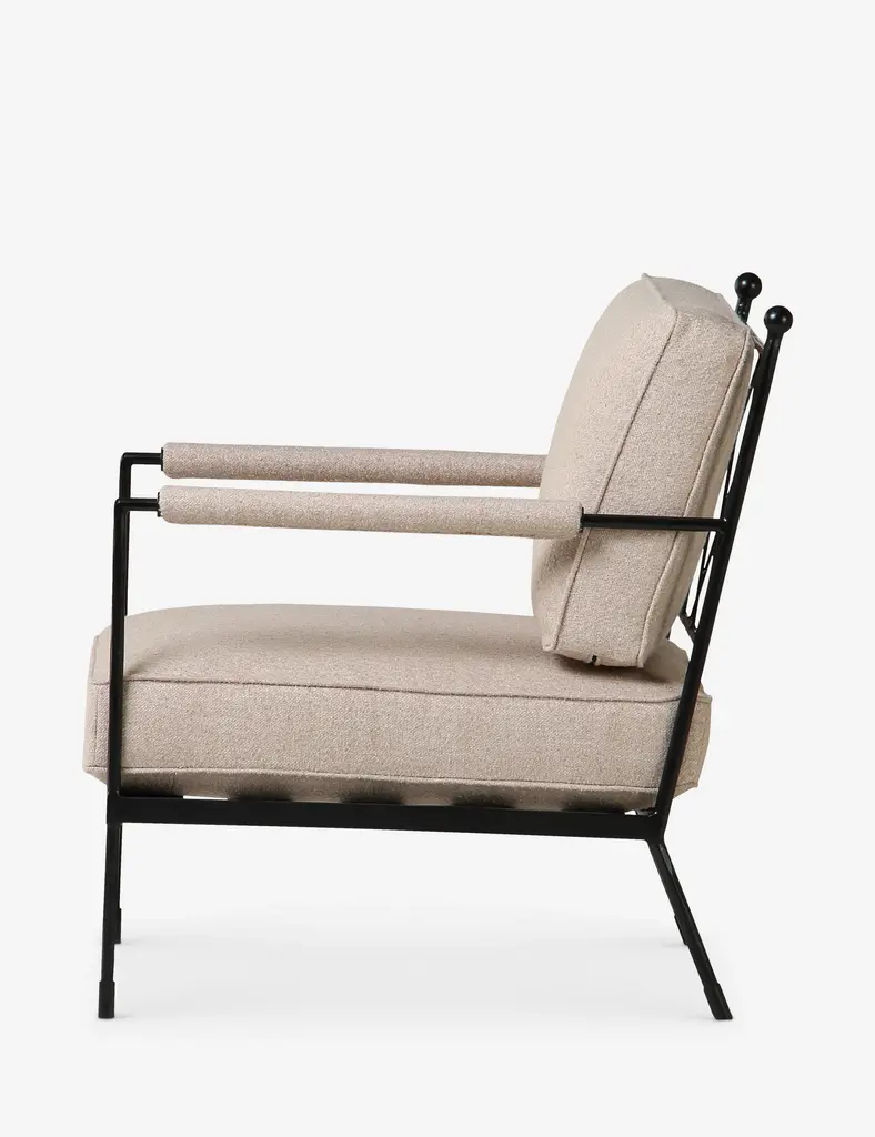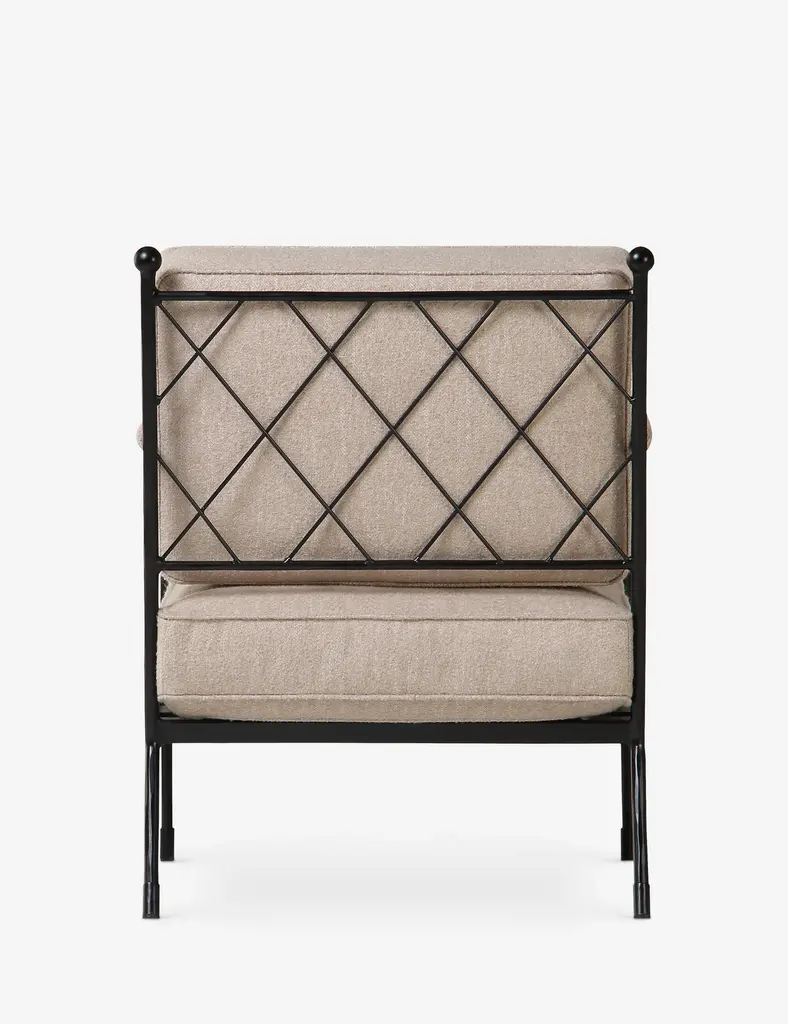 Gillian Segal brings her distinct blend of modern eclecticism and keen eye for delivering the unexpected to this collection for Moe's. The Vecchia accent chair takes its name from Italy's Posta Vecchia hotel, steeped in historical elegance. The hammered iron frame features a unique lattice detail with thick cushions and padded arms to style a timeless chair for effortless comfort.