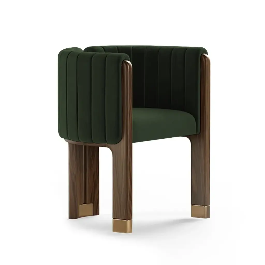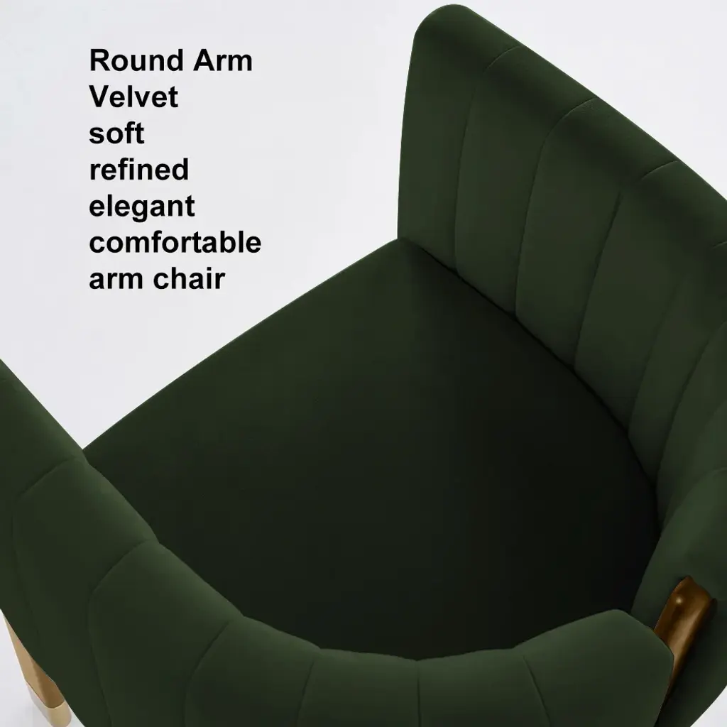 Crafted from ash wood and green upholstered in velvet, this chair adds a sleek look while ensuring strength and stability. As a refined and elegant presentation, this armchair combines modern style and is Perfect for modern living spaces, small apartments, or guest rooms.