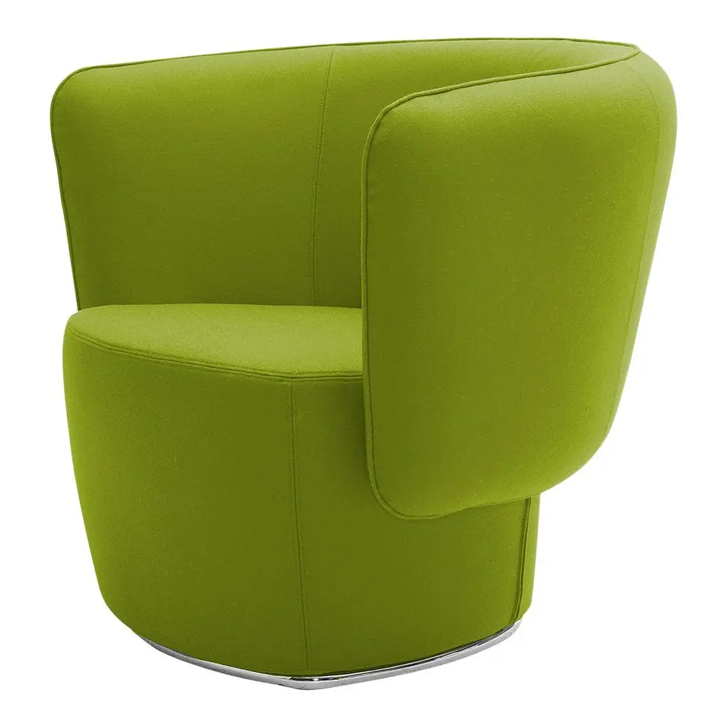 FULLY PADDED COMFORT. A useful, fully padded lounge chair in a comfy and inviting design equally suited for private and public spaces. The armrest is integrated with the backrest, and together with the oval seat they make up a uniform design that suits both existing and new furniture depending on the fabric choices.