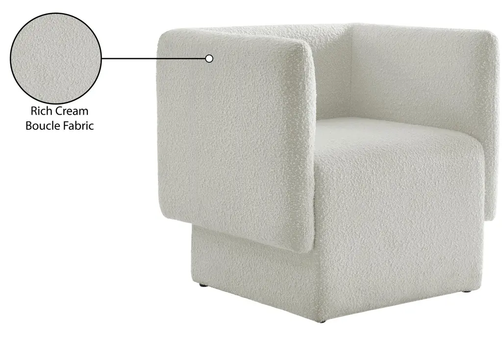 Vera Cream White Boucle Fabric Accent Chair | With Arms