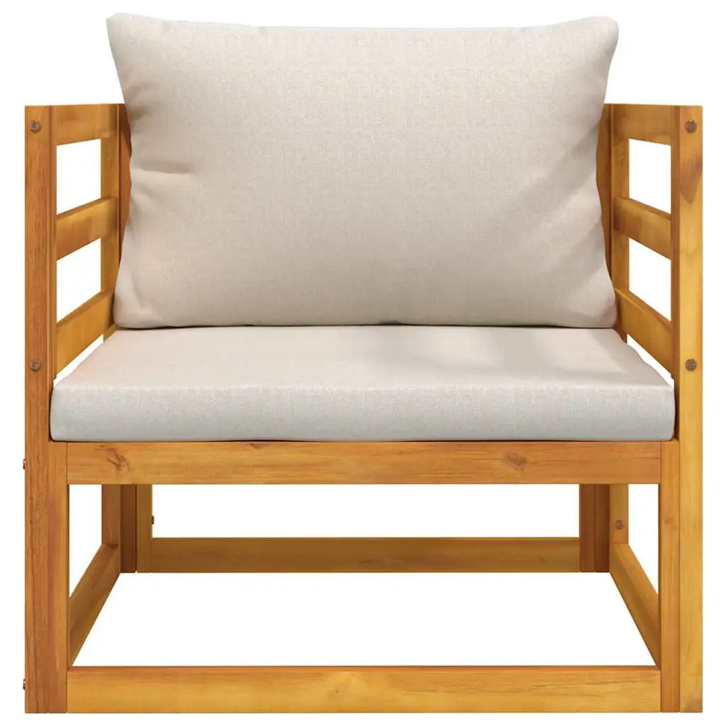 This garden chair strikes a perfect balance between simplicity and practicality, giving you a comfy spot to sit in your outdoor areas. Dressed in light grey cushions made from weather-resistant polyester, the solid acacia wood frame showcases a sleek brown finish that fits well in spaces from backyards to balconies, making it a versatile piece for your place. Top-notch Materials: Made from solid acacia wood, this chair is built to last and looks great, ensuring you can enjoy outdoor lounging for years.Comfort-Centric Design: The 6-inch thick seat and back cushions, designed with a zip for easy cleaning, make for a comfy sit all day long.Sleek Elegance: The modern design with smooth finishes fits in anywhere, making it a fantastic seating choice for inside or outside.Flexible Use: Great for balconies or gardens, this chair is perfect whether you’re having outdoor meals or soaking up the sun with a good book.Compact Size: Measuring 27.8 inches wide, 28.7 inches long, and 25.6 inches high, this chair fits snugly into tight spaces while still offering generous seating.