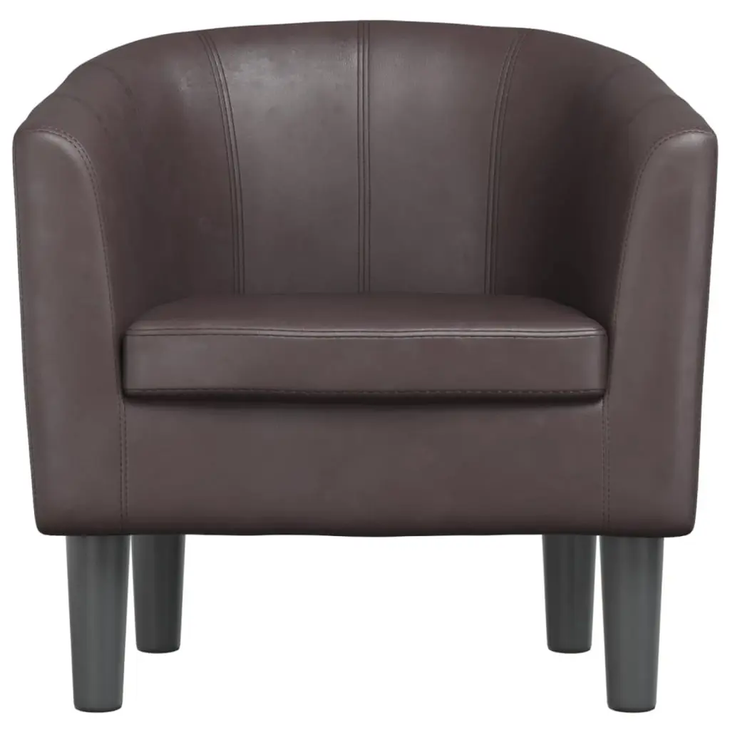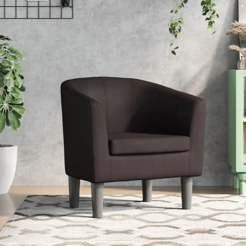 This tub chair is the perfect mix of style and function, adding a modern twist to any indoor space. Its inviting round shape and rich brown faux leather upholstery create a luxe vibe, making it a great addition to living rooms, bedrooms, or offices as a comfy reading nook or a standout piece. Stylish and Contemporary: The sleek, round shape and vibrant brown color set a sophisticated vibe that's a real showstopper in your home. Superb Comfort: With soft padding on the seat and armrests, this chair is perfect for long hours of relaxation, whether you're diving into a good book or enjoying your fave show. Durable Build: Covered in top-notch faux leather that resists stains, this chair not only looks fab but is easy to keep clean, making it suitable for everyday use. Perfect Size: With compact dimensions of 27.6 in by 22.0 in, it fits snugly in all kinds of rooms without taking up too much space. Versatile Application: This chair easily blends into different settings, whether it's a laid-back guest room or a stylish living room, enhancing the comfort and look of your décor.