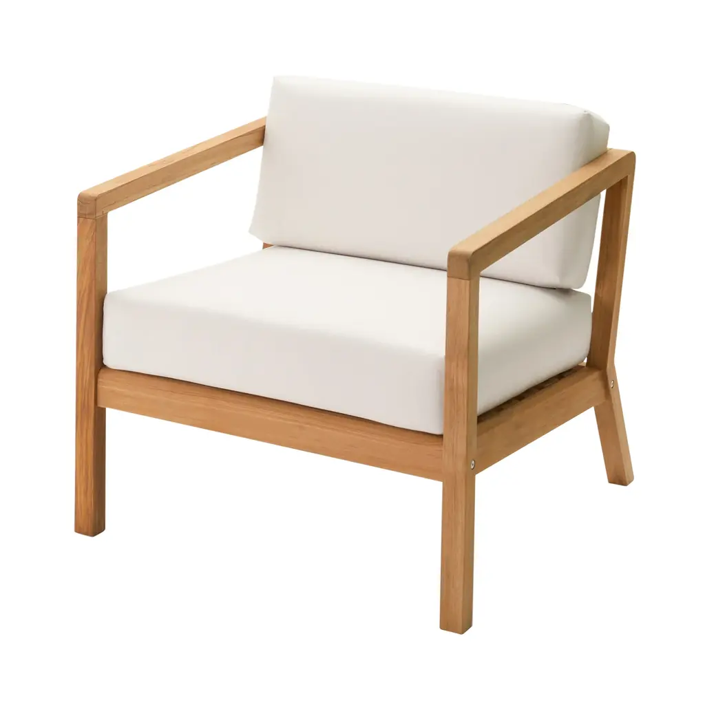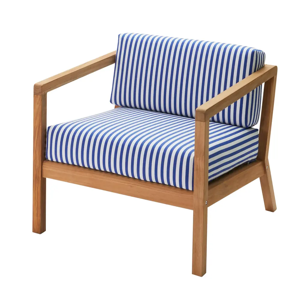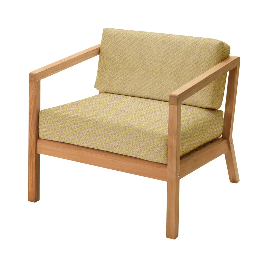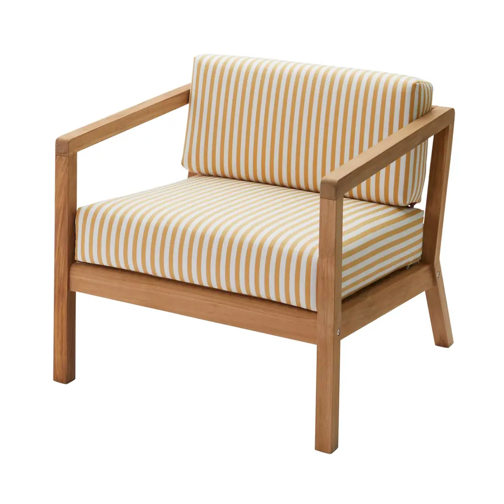 Nikolaj Duve and Kasper Meldgaard may take inspiration from Danish icons of the 1950s but Virkelyst Chair is thoroughly contemporary. Known collectively as Says Who, the Scandinavian designer duo brings an unwaveringly minimalist style to their outdoor seating. Crafted in solid teak, the spare wooden frame strikes a contrast with the thick, soft cushions covered in weather- and water-resistant Barriere textile.