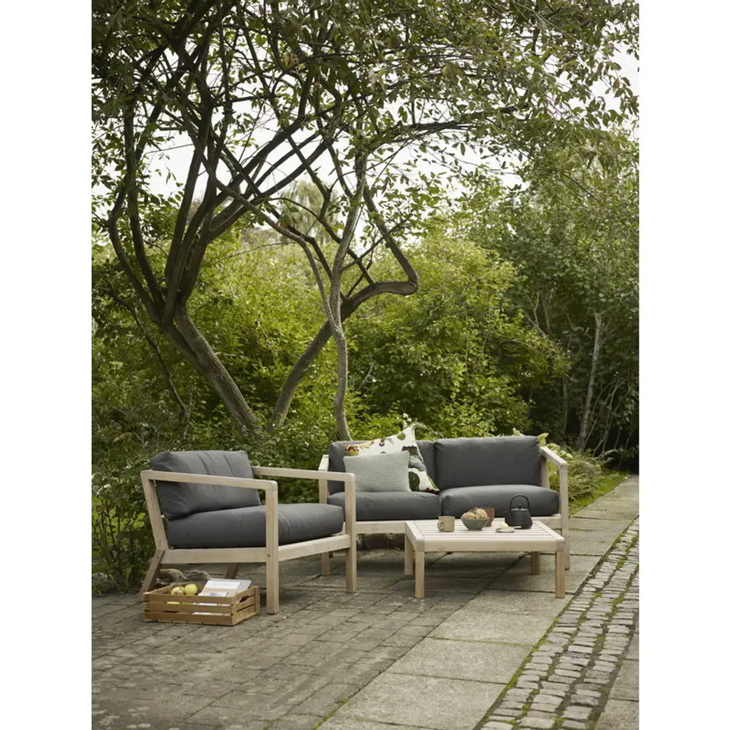 Skagerak’s Virkelyst chair is so comfortable that you could easily think it’s designed for indoor use. However, the lounge chair, consisting of a minimalist teak frame and plush cushions, is designed for outdoors and its upholstery is therefore very durable as well as water and dirt resistant. The hypoallergenic Fossflakes inside the cushions are known as a very breathable padding material that maintains its shape over time. Virkelyst is a modern outdoor furniture range, designed by SAYS WHO for Skagerak, combining a clean-lined design with the natural appeal of teak wood which, in time, will develop a beautiful silvery gray patina. Combine your favorite Virkelyst furniture to get a stylish sofa set for your garden or porch or create a small summer oasis on the balcony.