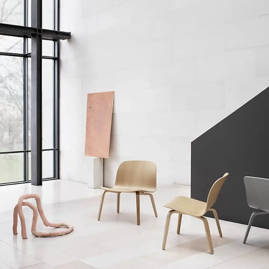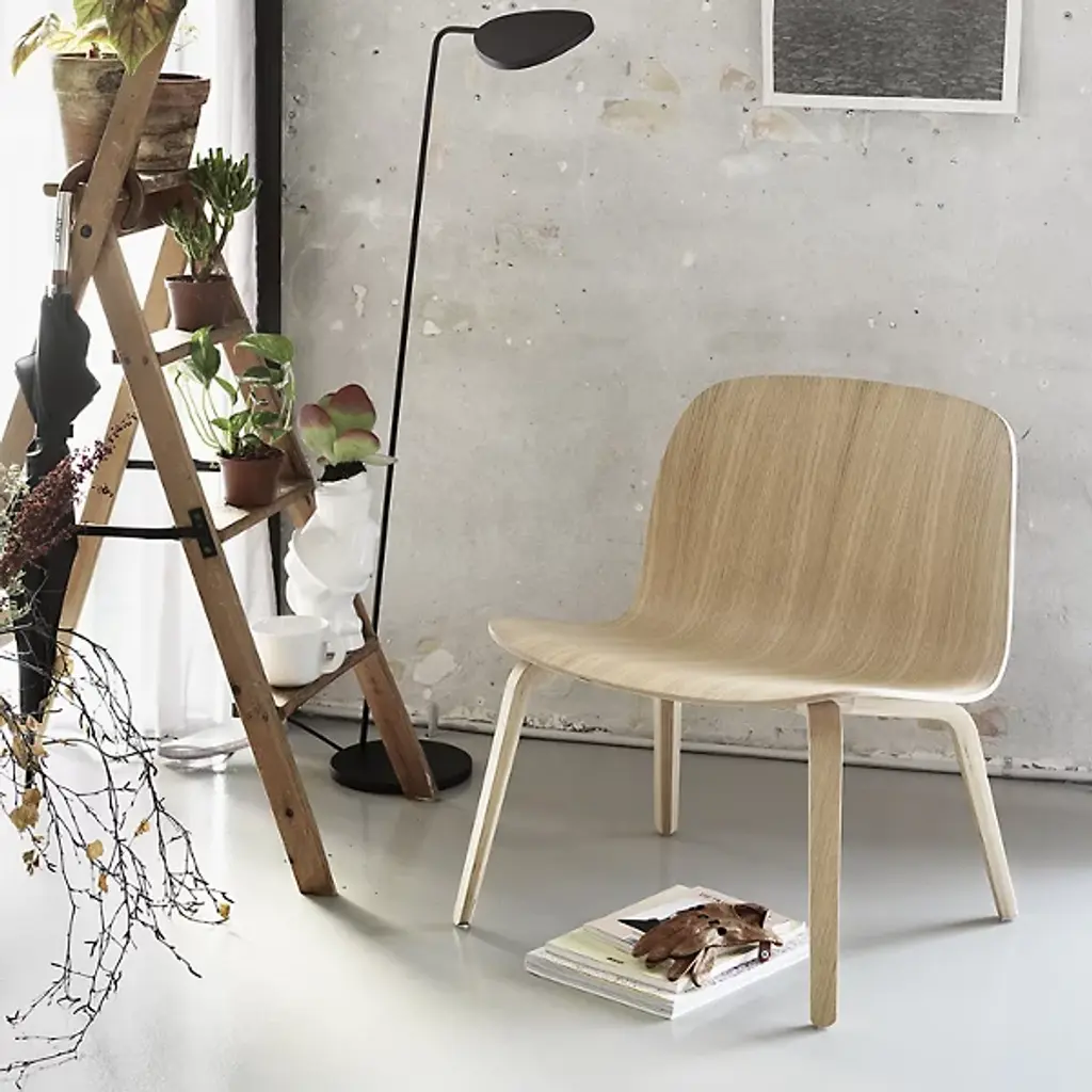 Maximum comfort in a straightforward design. The Visu Lounge Chair from Muuto features an unconventional Scandinavian design composed of a strong frame with a form-pressed veneer. Designed by Mika Tolvanen, this product reflects his belief that the design of an item should never make “too much noise” and should instead be focused on the item’s purpose. The gentle curves of the oak frame have been coated with a water-based lacquer, creating a durable and comfortably functional seat.
