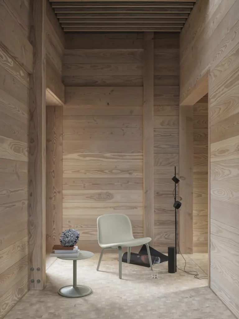 The Visu Lounge Chair provides maximum comfort in an unconventional Scandinavian silhouette with a sturdy base and shell in form-pressed veneer.