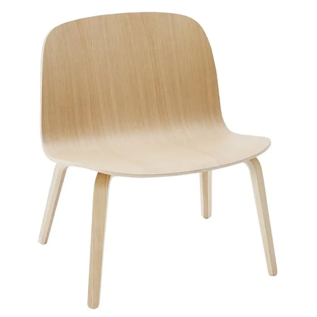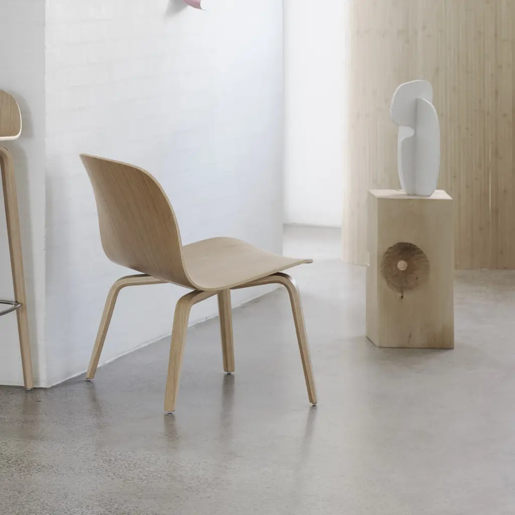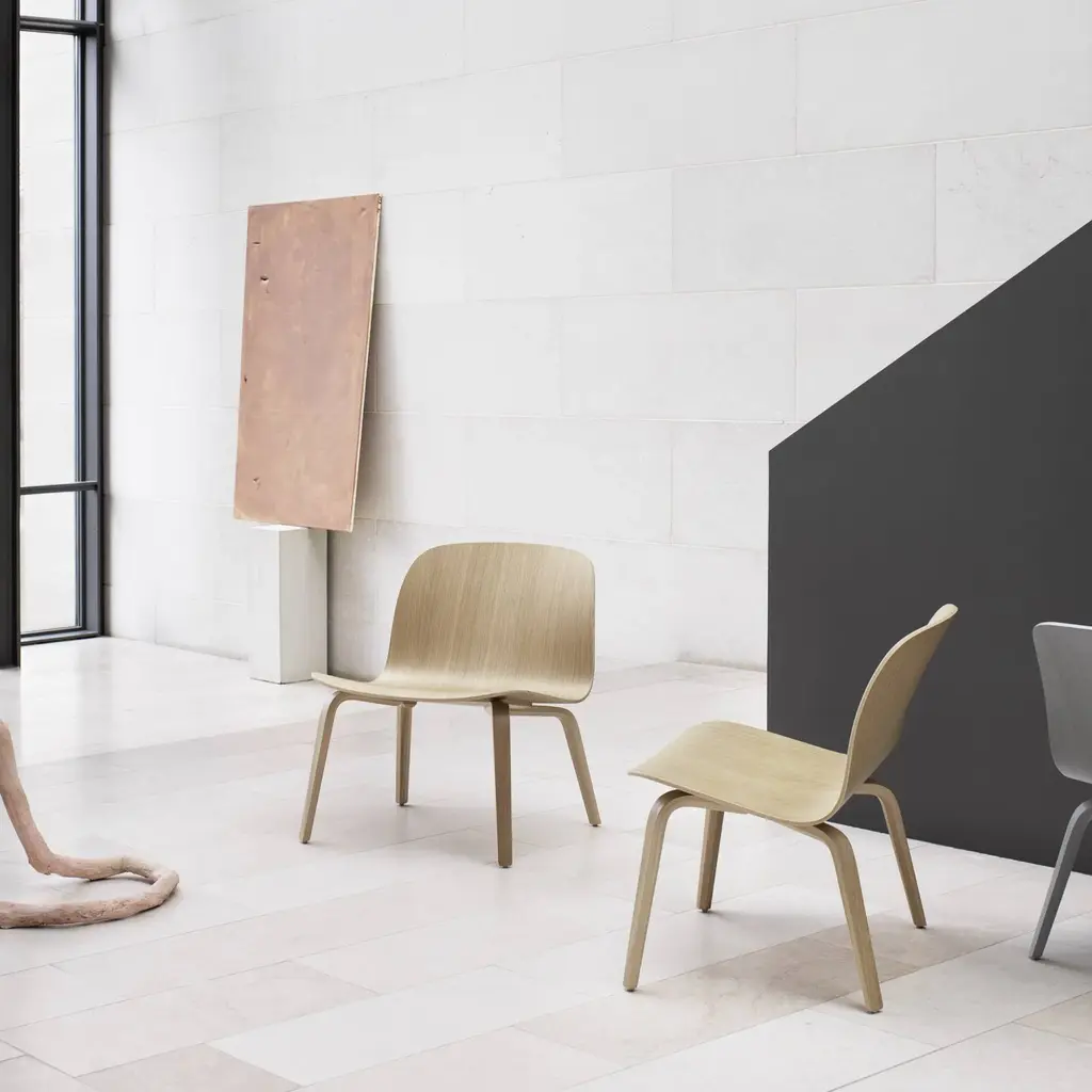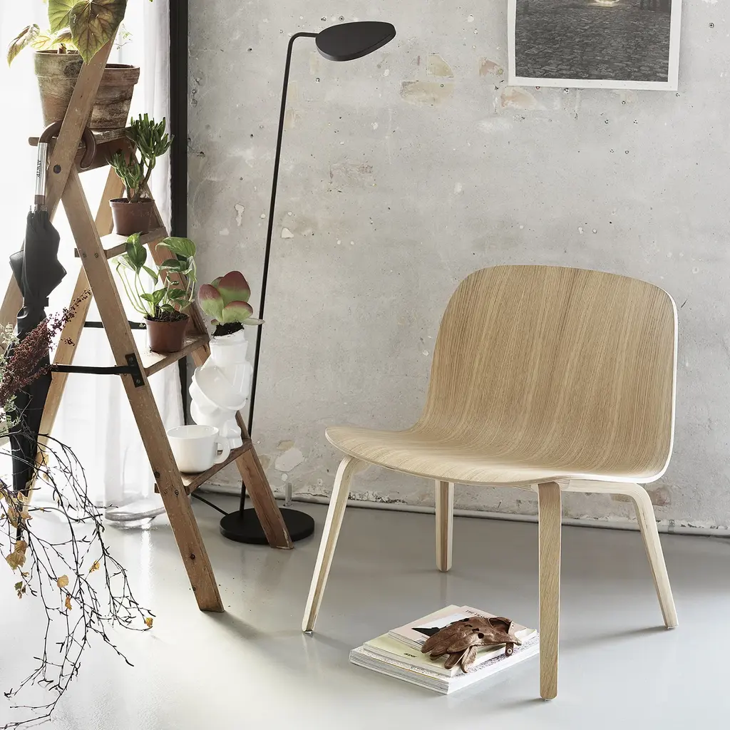 Absent of any decorative excess, the sinuous Visu Lounge Chair revels in the beauty of its essentials. Danish brand Muuto realized the collection for fellow Helsinki designer Mika Tolvanen, who named it "Visu," the Danish word for "precision." Mika, who is part of the Rehti Design Group, observed: "I wanted my chair to have an unobtrusive and timeless nature that is familiar but never boring and without sacrificing function or ergonomics." No design ennui here: the Visu Lounge Chair is uncommonly versatile, whether the choice is natural oak veneer or lacquered ash veneer in more-than-basic black or an assortment of hues.