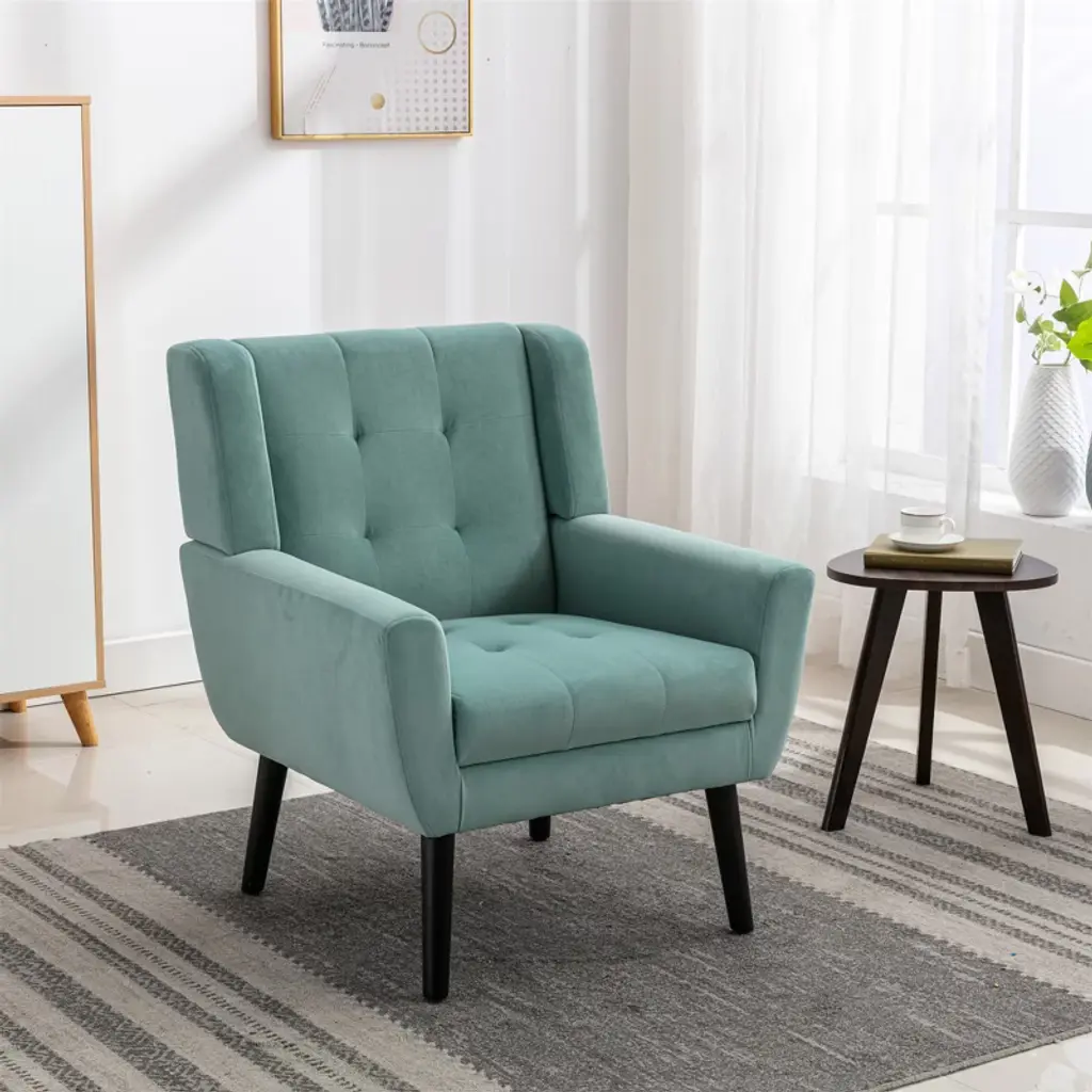 Vynxaria Mint Green 34.6"h Modern Linen Accent Chair With Black Legs For Indoor Spaces