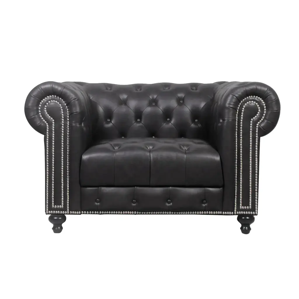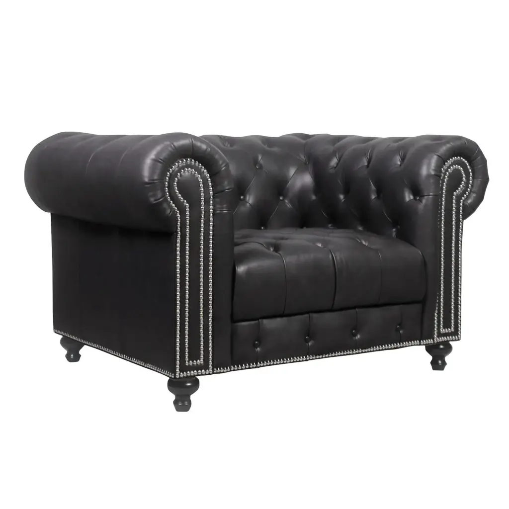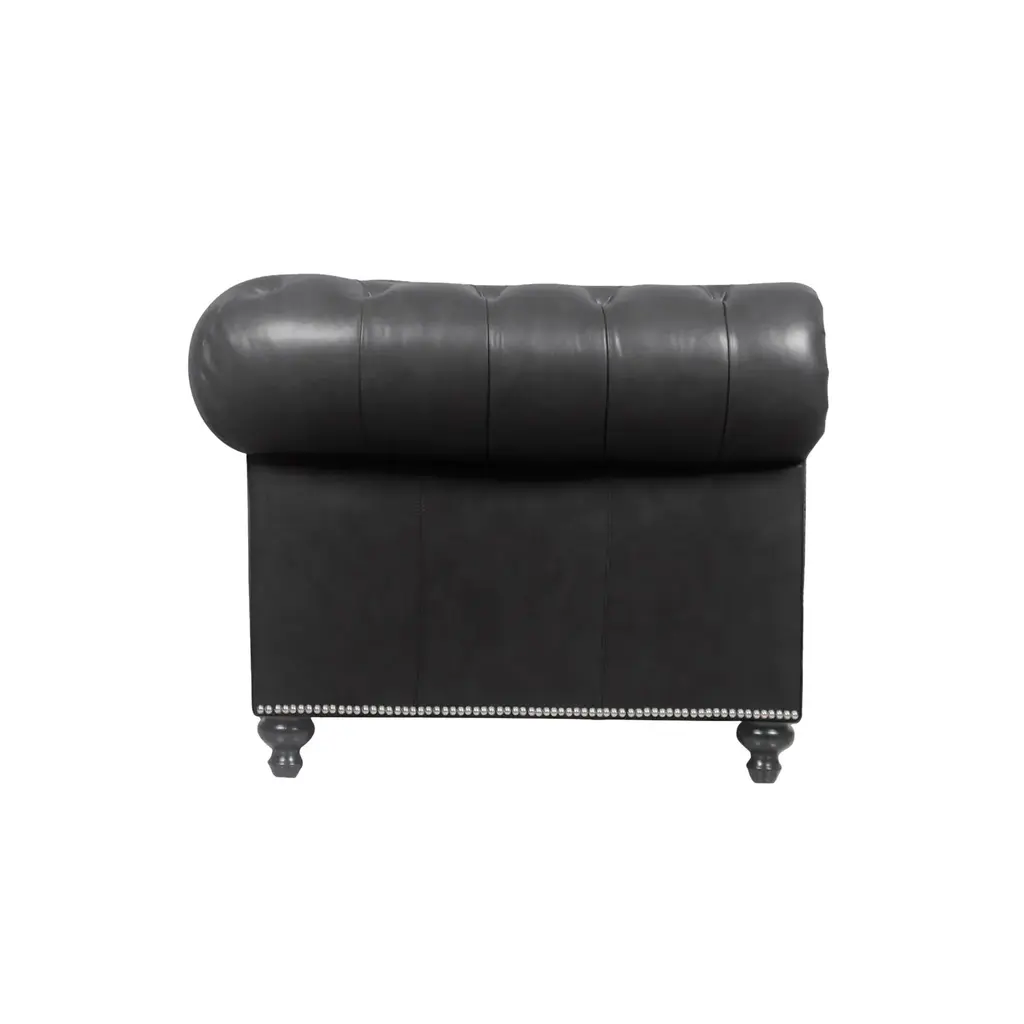Z Gallerie’s exclusive Wakefield Leather chair displays distinctive style, with oversized rolled arms embellished with a double row of nailhead trim, button tufted seat and interior arms and back, and turned legs finished in an Espresso stain. Each piece is constructed by a team of expert artisans to ensure ultimate quality and durability. Shown in Cortina Leather Charcoal.Exclusive to Z Gallerie.Available in over 35 fabrics. Custom Orders: Custom Furniture is manufactured especially for you, which is why we do not accept cancellations, exchanges, or returns.