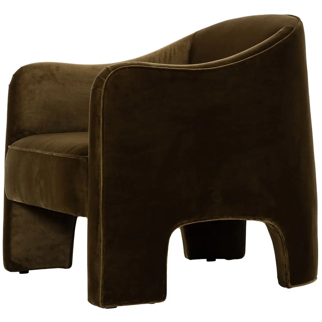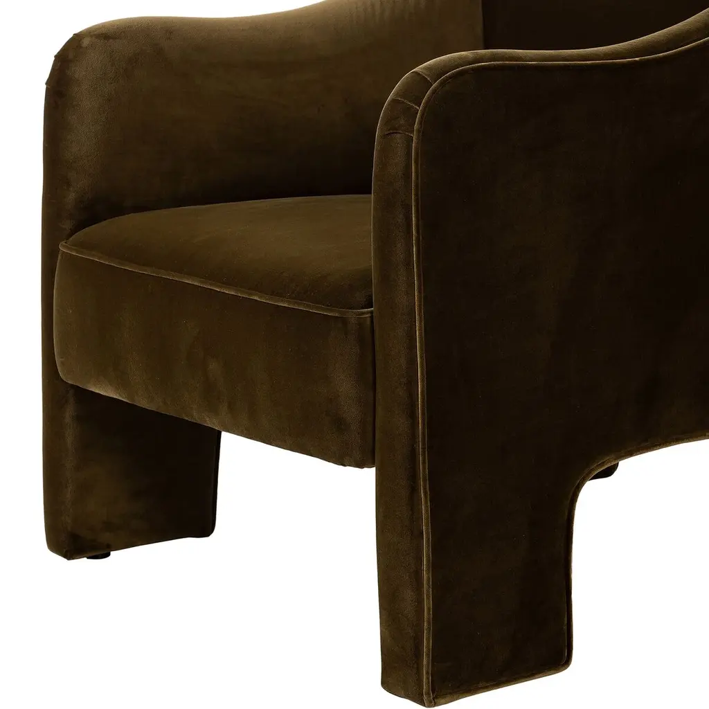 Upholstered in plush velvet, this shapely chair not only commands attention but is also a delight to sink into. That's thanks to its S-spring seat construction and ample cushioning.